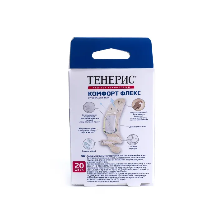 Лейкопластырь бактерицидный на основе перфорированной полупрозрачной полимерной плёнки телесного цвета. Влагоустойчивый. Пропускает воздух. Антитравматическое покрытие раневой подушечки с ионами серебра.