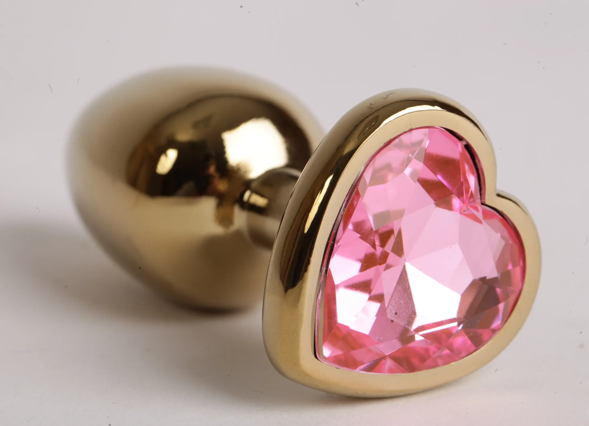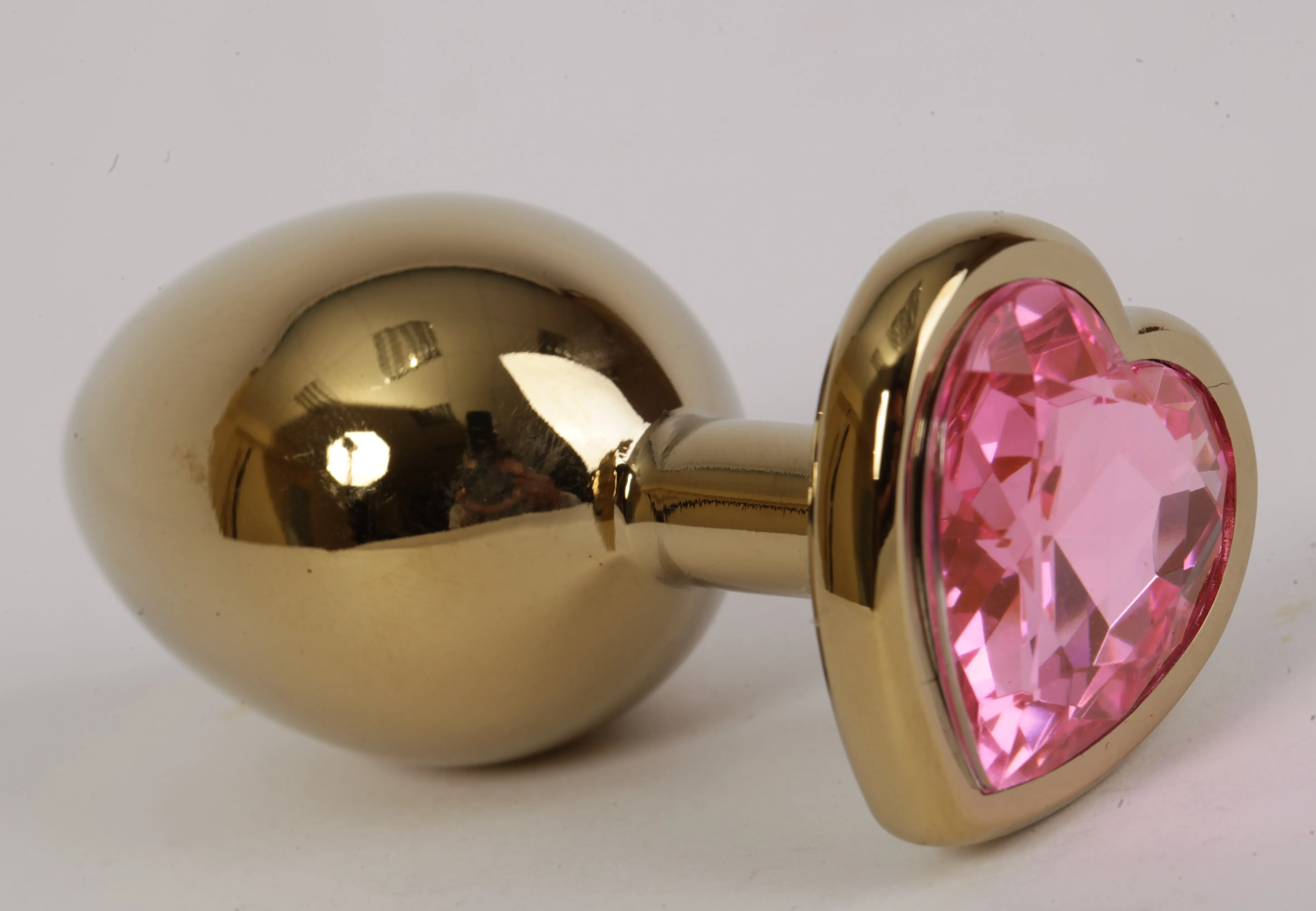 Анальная пробка золото 7,5 х 2,8 см с сердечком розовый страз размер-S 47193-MM