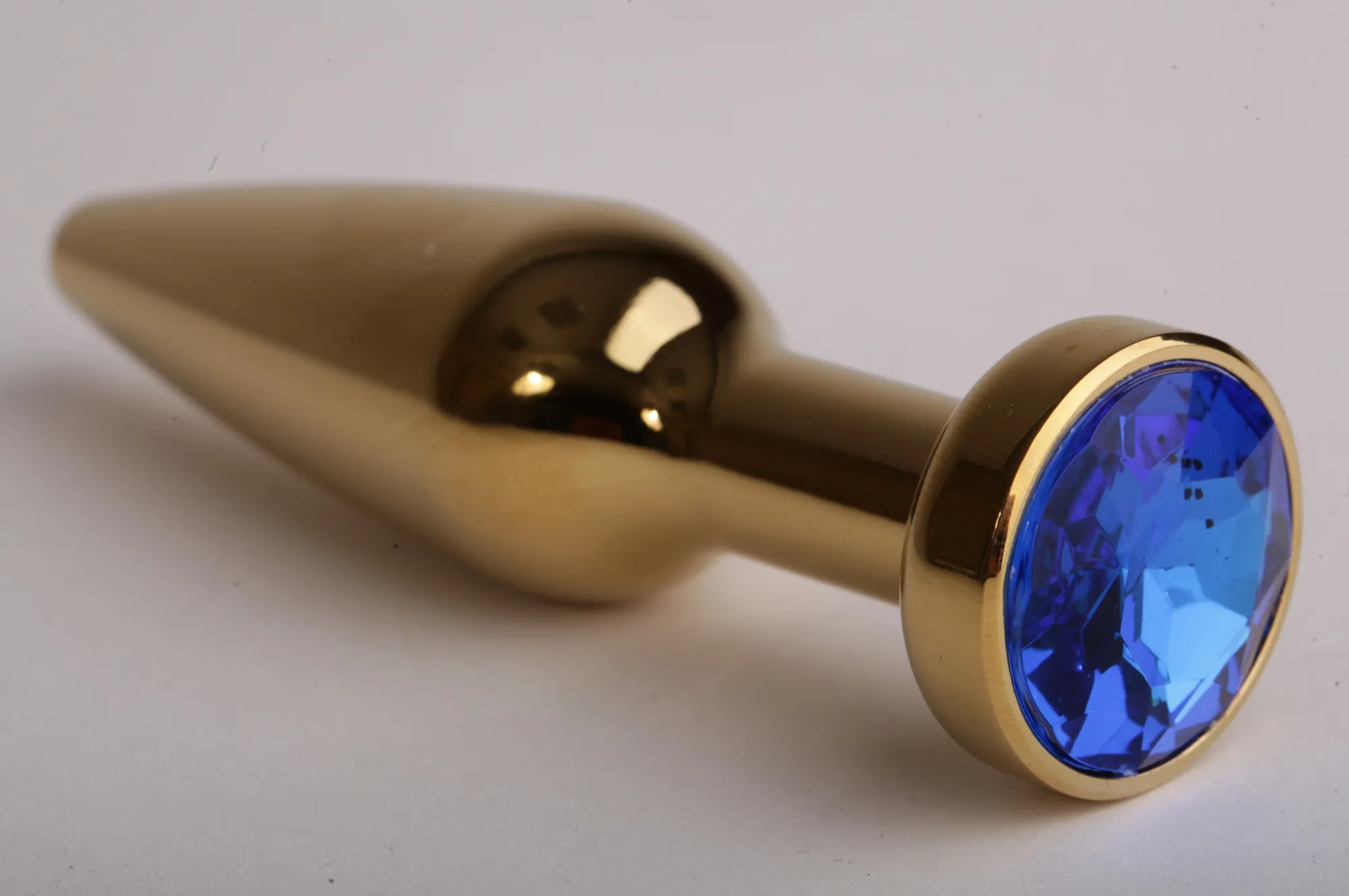 Анальная пробка золото с синим стразом 11,2х2,9см 47198-4-MM