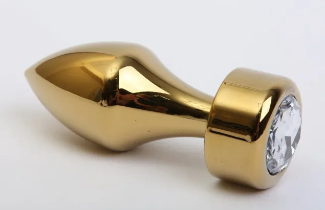 Анальная пробка под золото с ярким кристаллом внесет разнообразие в вашу интимную жизнь. Обладает сглаженной формой, что позволяет обеспечить легкое введение и комфортное длительное ношение. Снабжена ограничительным основанием для безопасного использования. Характеристики: Общая длина 7,8 см, высота основания 1,8 см, рабочая длина 6 см,наибольший диаметр: 2,9 см., вес 80 гр. Упаковка: индивидуальный тканевый мешочек и коробка.