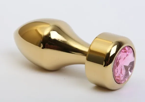Анальная пробка металл золото с розовым стразом 7,8х2,9см 47443-MM