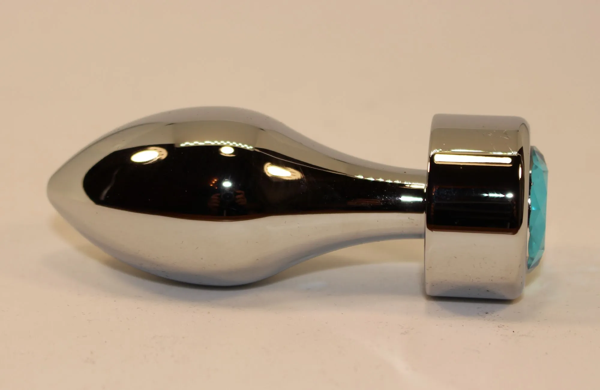 Анальная пробка металл серебро с голубым стразом 7,8х2,9см 47444-1MM