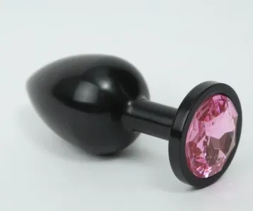 Анальная пробка металл черная с розовым стразом 8,2х3,5см 47411-MM
