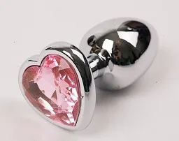 Анальная пробка под серебро с ярким кристаллом в форме сердечка внесет разнообразие в вашу интимную жизнь. Обладает сглаженной  формой, что позволяет обеспечить легкое введение и комфортное длительное ношение.  Снабжена ограничительным основанием для безопасного использования. Характеристики:  Общая длина 9 см, высота основания 2 см, рабочая длина 7 см, наибольший диаметр 4 см., вес 165 гр. Упаковка: индивидуальный тканевый мешочек и коробка.