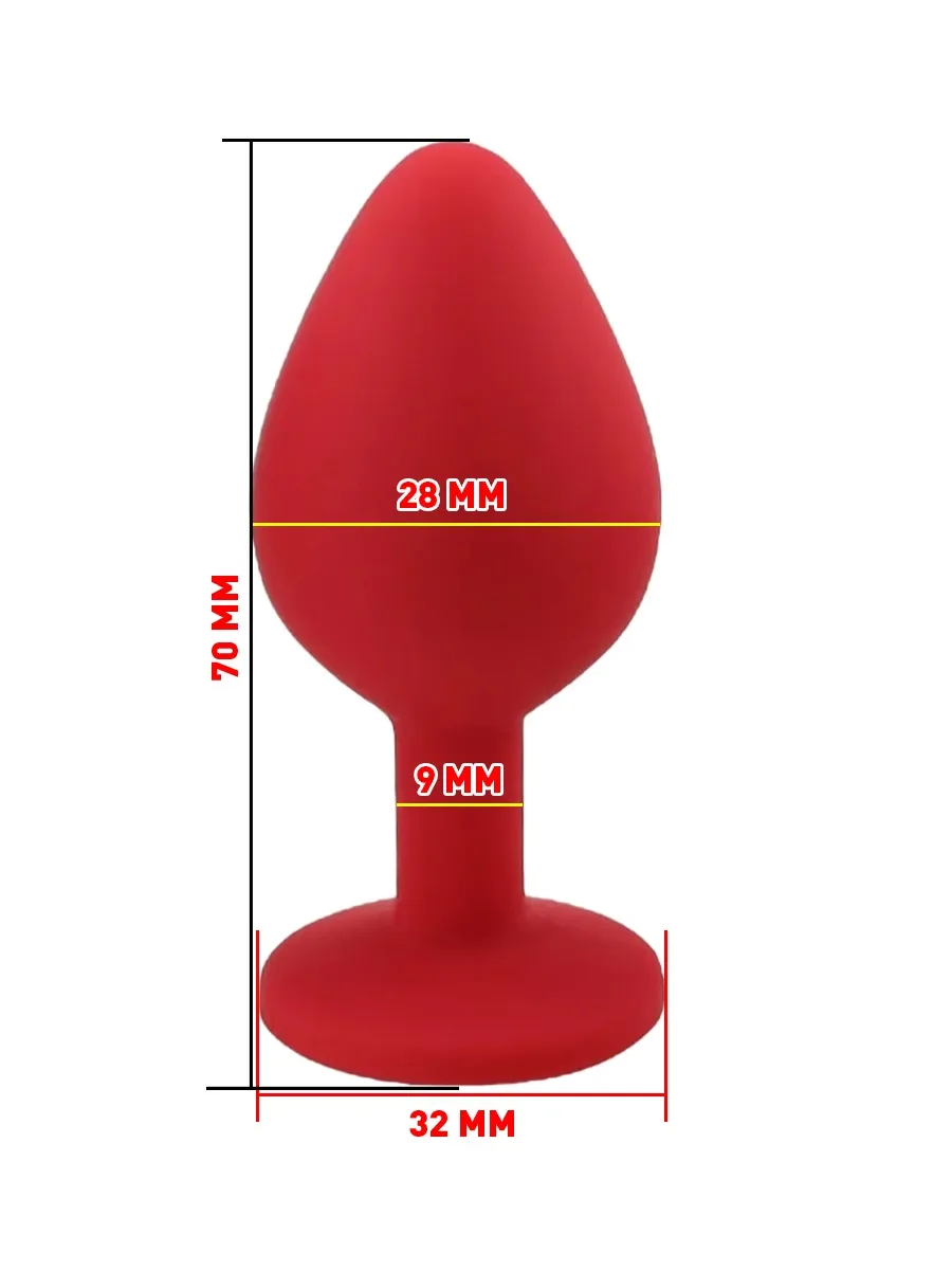 Красная анальная пробка с синим стразом, вносит разнообразие в вашу интимную жизнь. Обладает конусной формой, что позволяет обеспечить легкое введение. Характеристика: общая длина- 7,5 см, рабочая длина- 7,1 см, диаметр- 2,8 см. Материал- силикон. Упаковка: бархатный мешок.