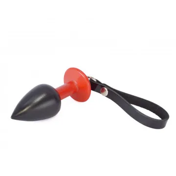 Анальная пробка черно красная с ремешком ТПЕ SB-9007-12