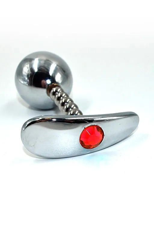 —Серебряная анальная пробка для ношения с красным кристаллом Small