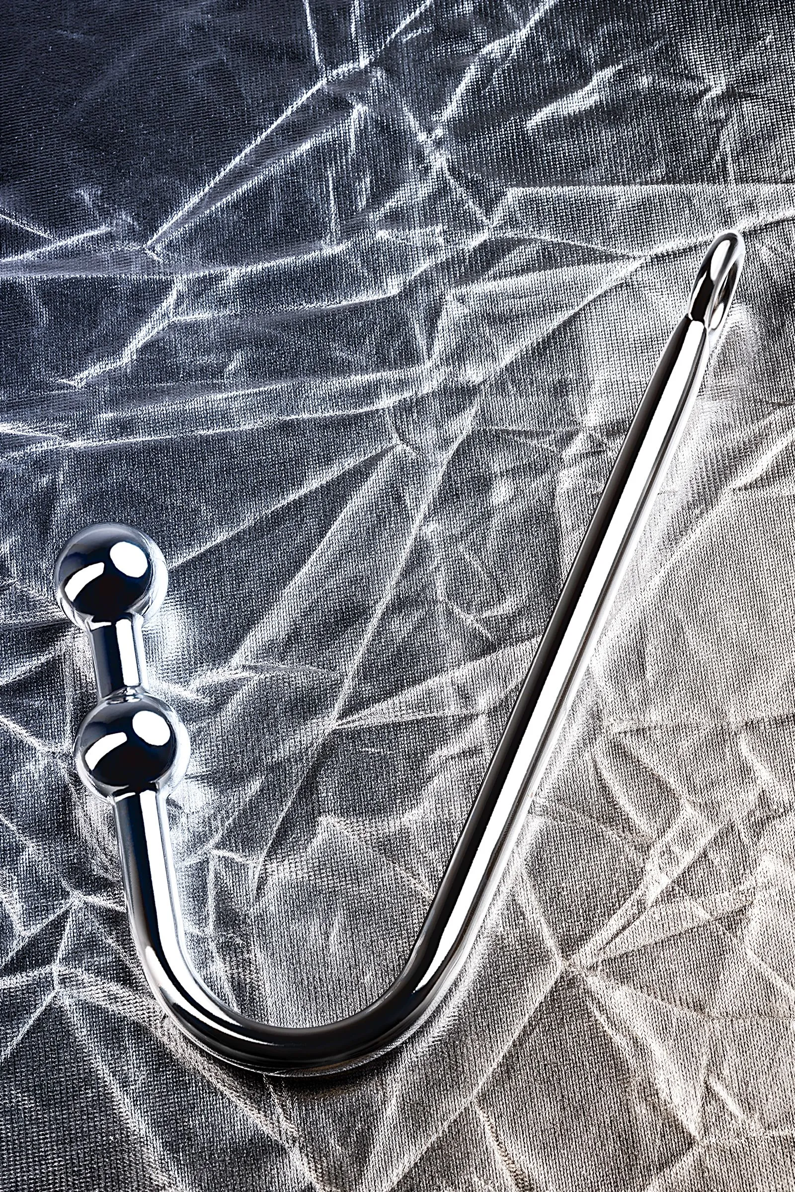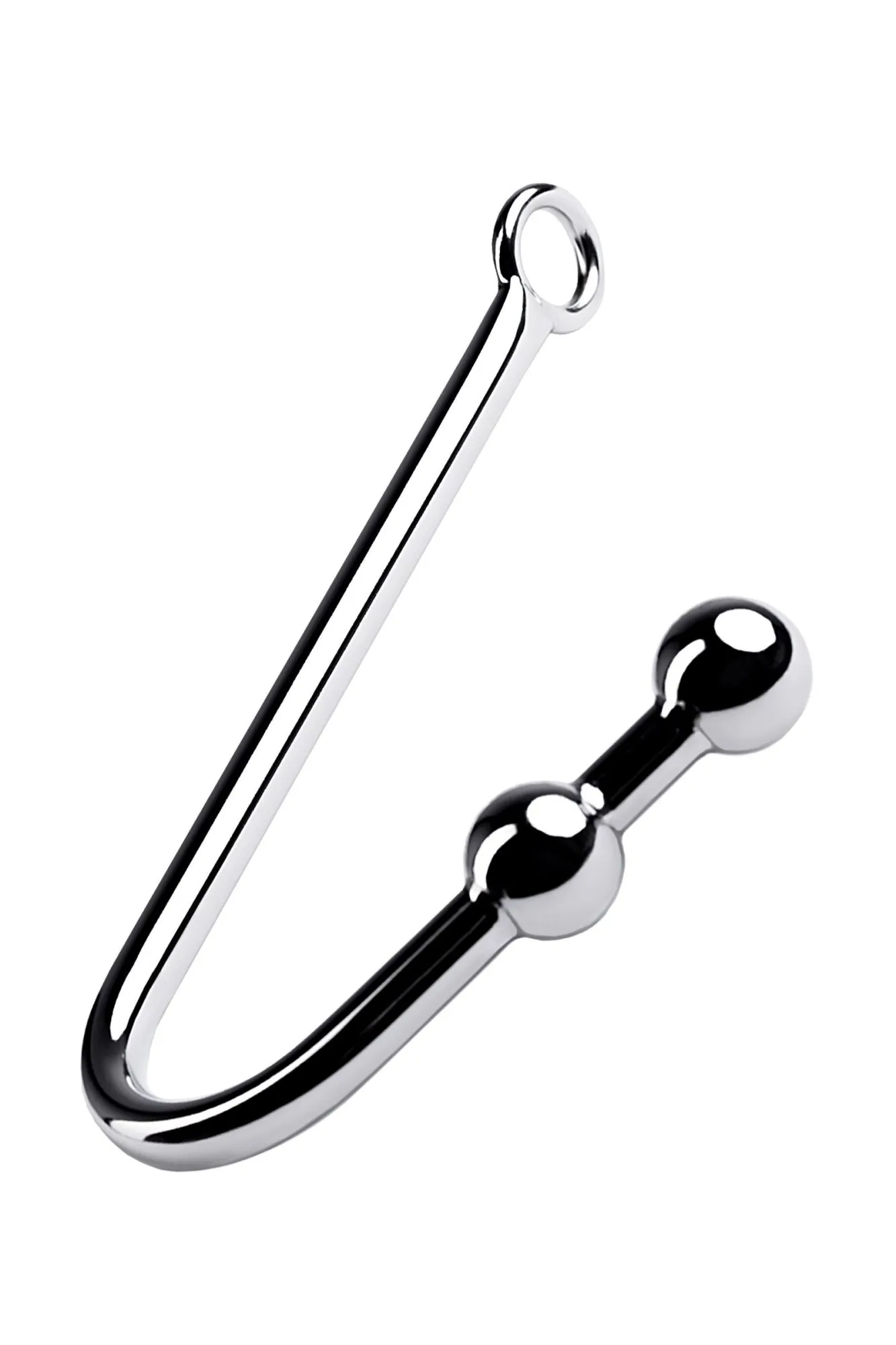 Анальный крюк с двумя вмонтированными шарами. Небольшие шары удобны для введения, расстояние между ними составляет 2см.