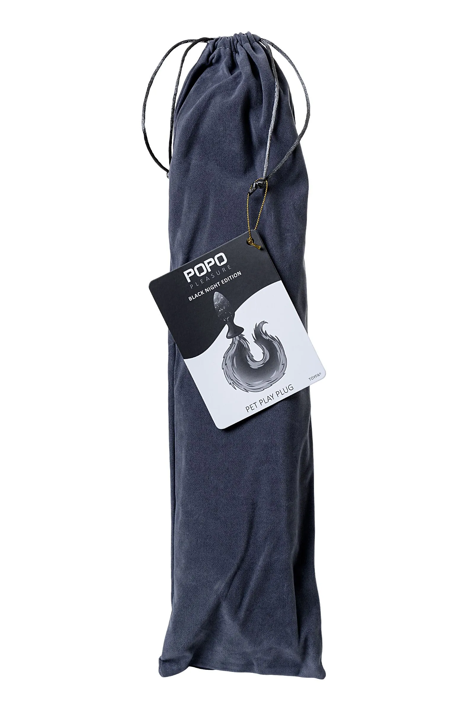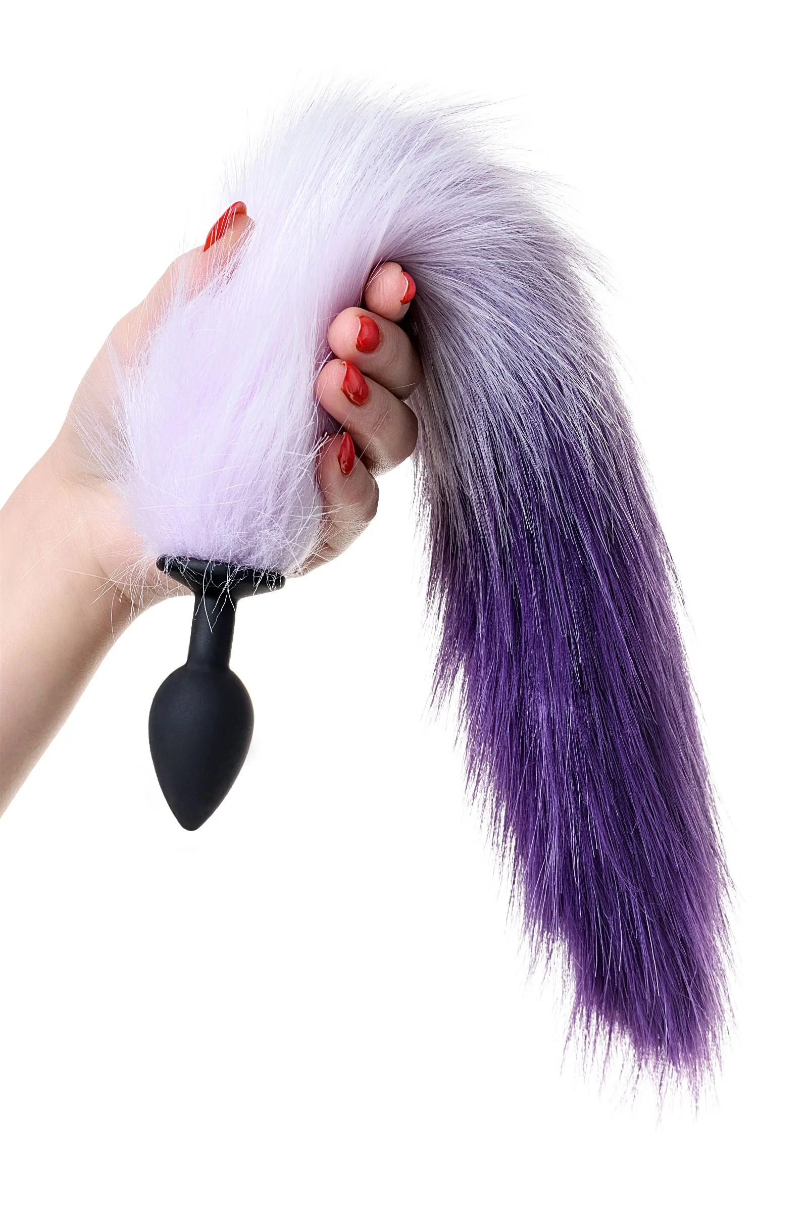 —Анальная втулка с бело-фиолетовым хвостом POPO Pleasure by TOYFA, S, силикон, черная, 45 см, Ø 2,7 с