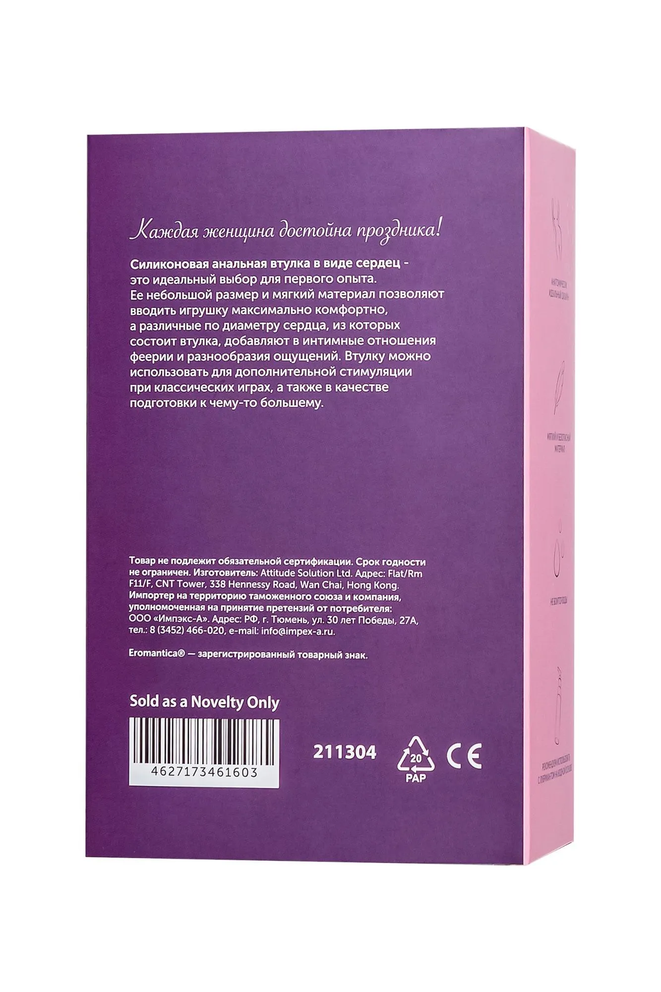Небольшой размер втулки идеален для первого опыта. Специальный рельеф из постепенно увеличивающихся в диаметре сердечек обеспечивает дополнительную стимуляцию. Присоска позволяет закрепить игрушку на ровной поверхности и освободить руки.