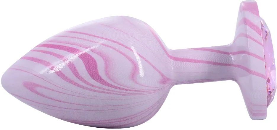 Литая анальная пробка имеет конусообразную форму и гладкую фактуру шлифованного металла которую обволакивает эмаль. Легкий и прочный алюминиевый сплав гарантирует долговечность и гигиеничность. Крупный граненый кристалл в основании имеет специальное светоотражающее покрытие дна для усиления блеска и более яркого и красочного вида.