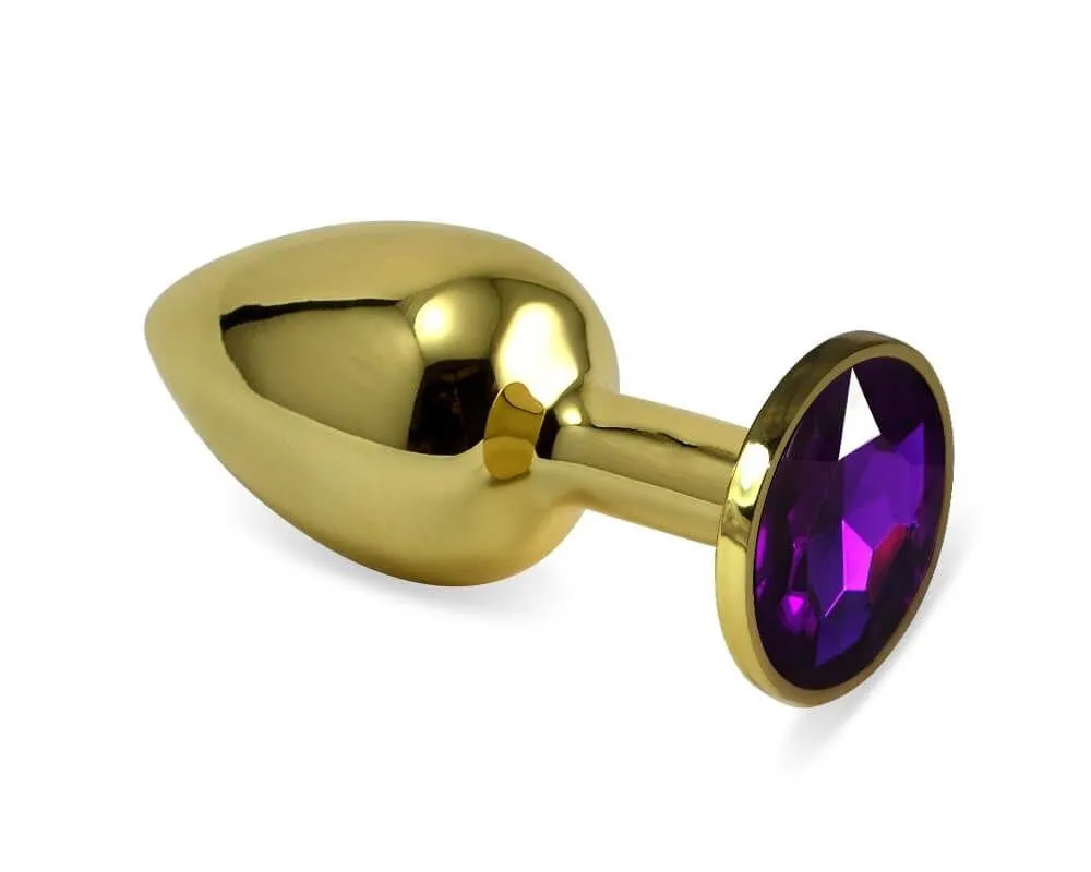Анальная пробка изготовлена из металла золотистого цвета, не имеет характерного запаха и полностью гипоаллергенна. Она идеально подойдет для тех, кто еще не знаком с анальными ласками, так как ее небольшой размер и зауженный кончик обеспечат комфортное введение. В широком основании игрушки размещен крупный камень фиолетового цвета, добавляющий ей пикантности и намекающий на яркие удовольствия, которые Вы получите во время игры с ней. Благодаря своей безукоризненно гладкой поверхности пробка легко вводится в анус и позволяет деликатно подготовиться к анальному сексу. Побалуйте себя или своего партнера!
