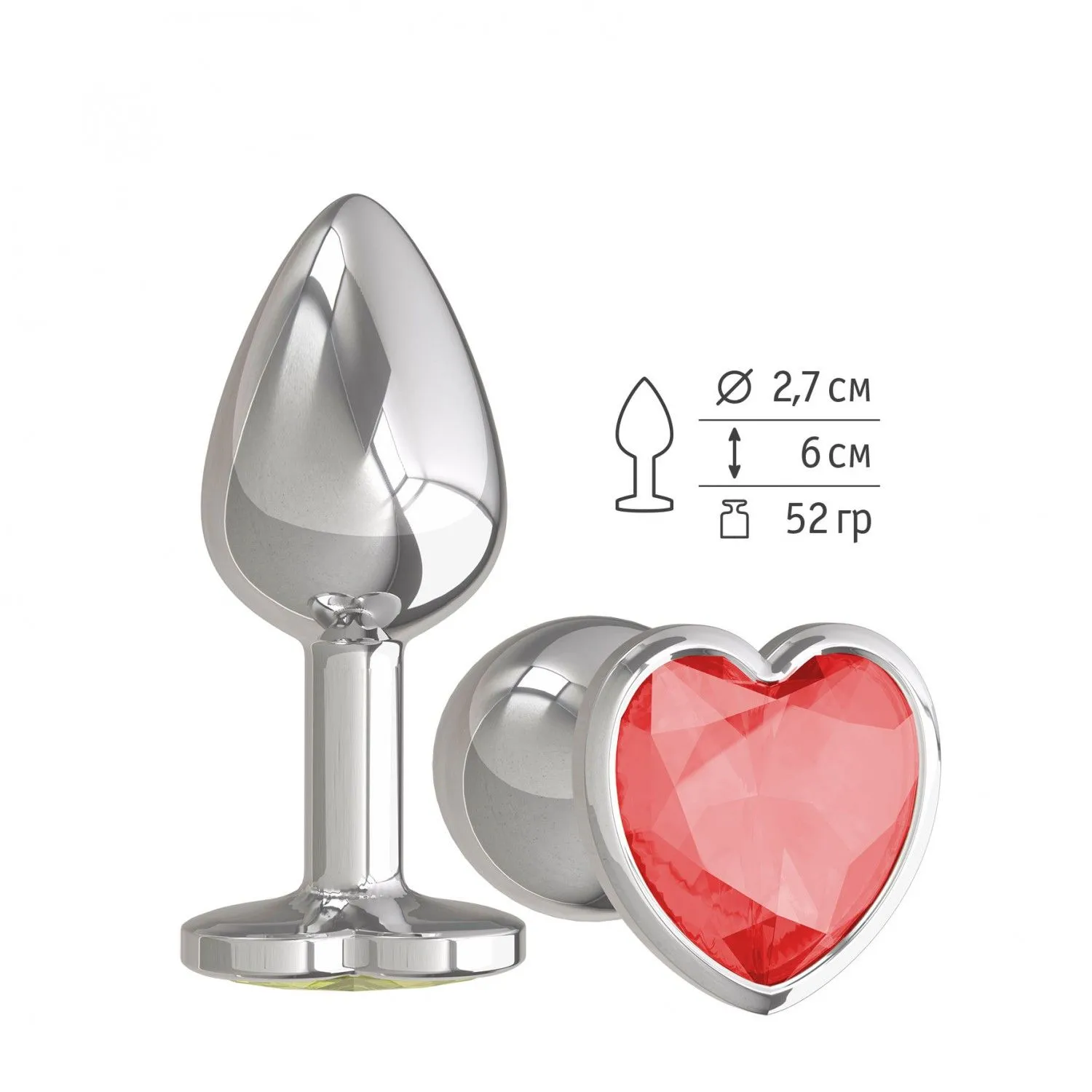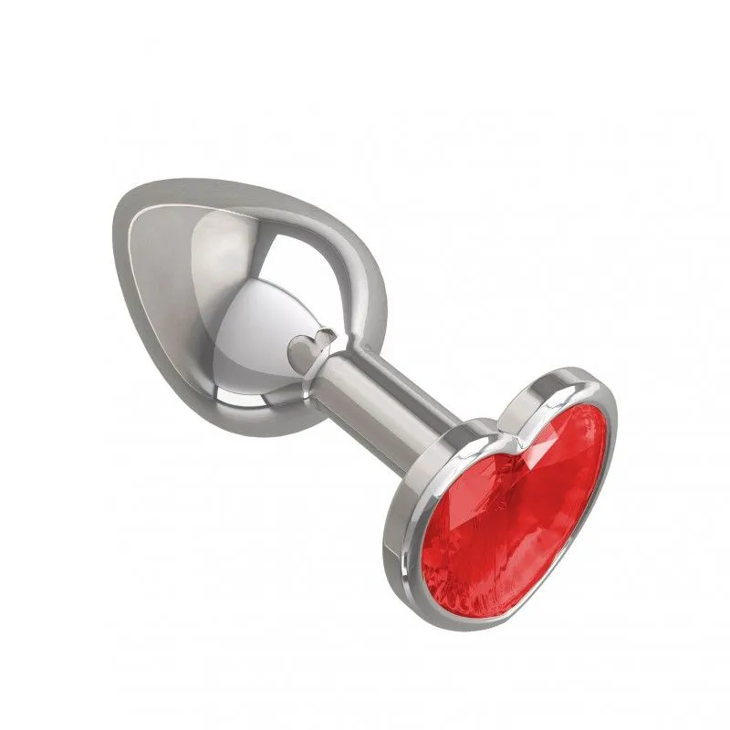 —Втулка анальная Silver с красным кристаллом-сердцем