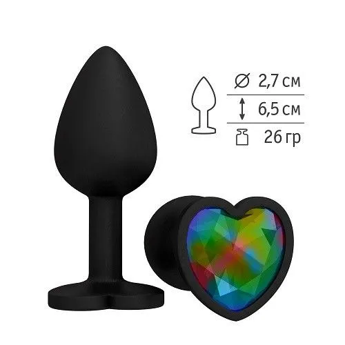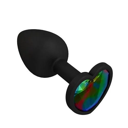 Пробка силиконовая черная с разноцветным кристаллом сердце