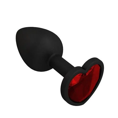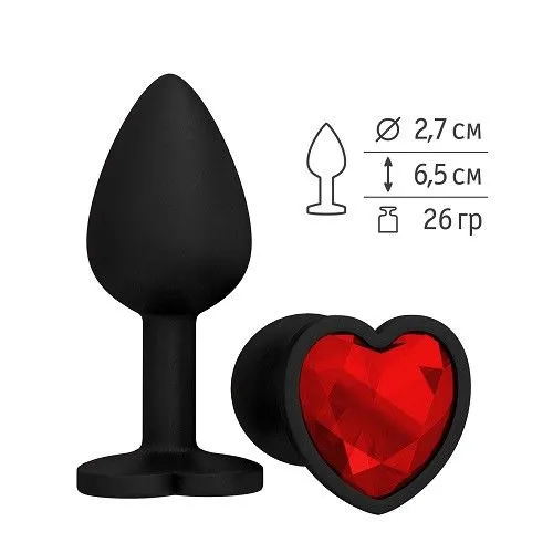 Пробка силиконовая черная с красным кристаллом сердце