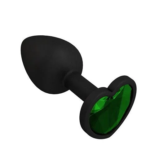 Пробка силиконовая черная с зеленым кристаллом сердце