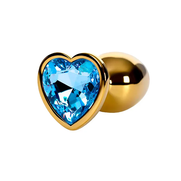 Металлическая блестящая золотистая анальная пробка от Pink Rabbit с переливающимся фиолетовым кристаллом в основании. Прелестная игрушка для разнообразия любовных игр и ласк.