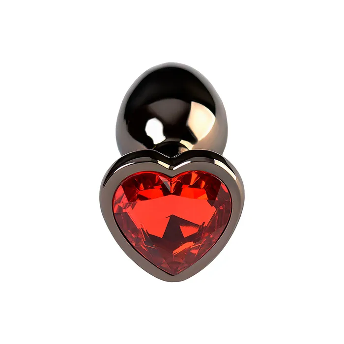 Анальная пробка PinkRabbit Shade металлическая с красным кристаллом-сердцем, размер S, темн серебро