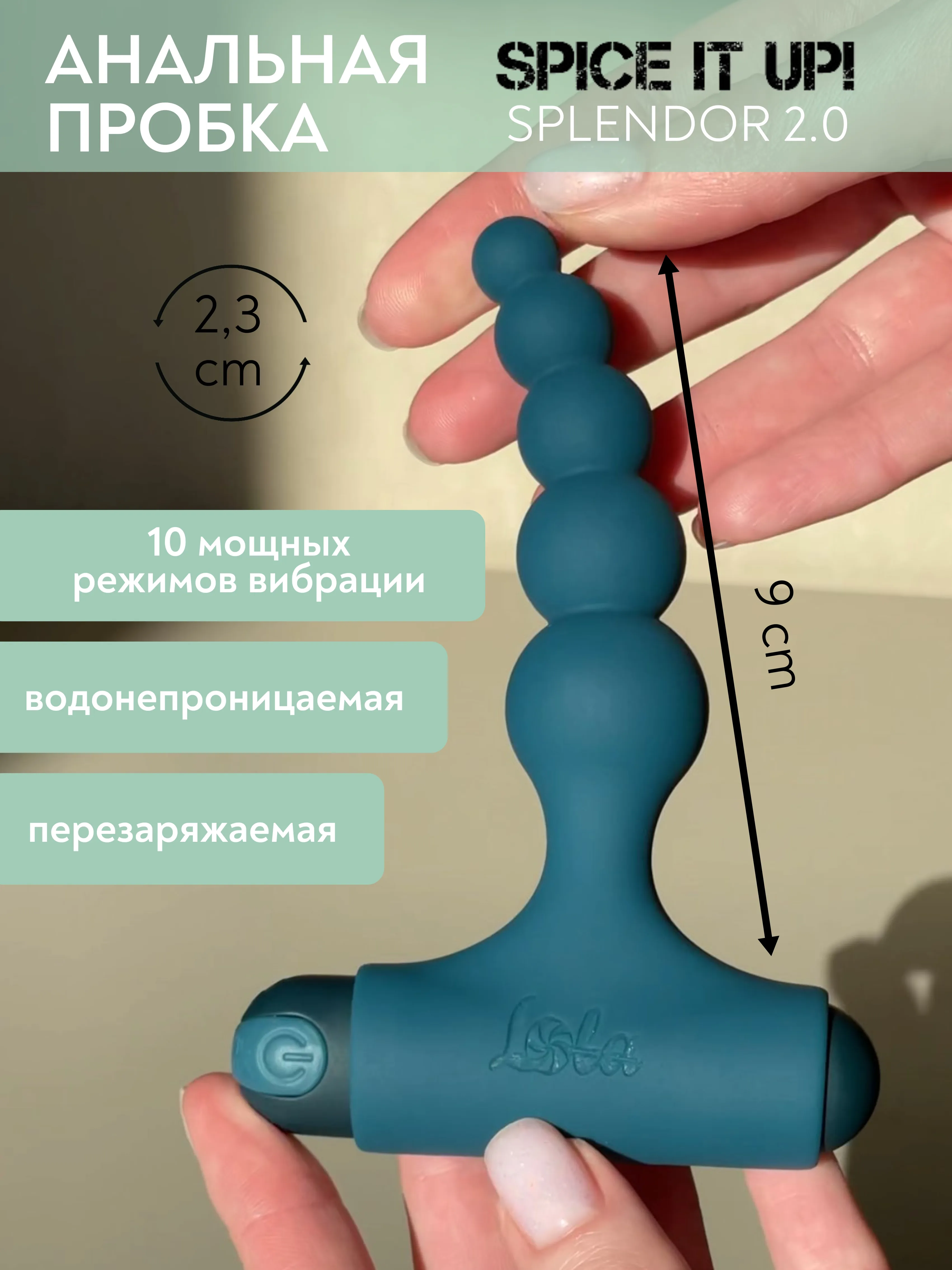 Анальная пробка Splendor 2.0 с супер мощной перезаряжаемой вибропулей с 10 режимами вибрации – невероятно гибкая игрушка, которая подойдет как новичкам, так и тем, кто хочет добавить азарта в свои анальные игры. Благодаря анатомически правильно изогнутому кончику Splendor 2.0 идеально подходит для массажа простаты. Изготовлена из гипоаллергенного силикона. Рабочая длина пробки составляет 9 см, а диаметр - 2,3 см. Перезаряжаемая вибриропуля изготовлена из пластика, не содержащего фталатов, имеет водонепроницаемость IPX7 и 10 режимов вибрации. Полностью заряжается за 80 минут. Работает без перерыва 175 минут. Длина пули - 7,6 см, диаметр - 2 см.
