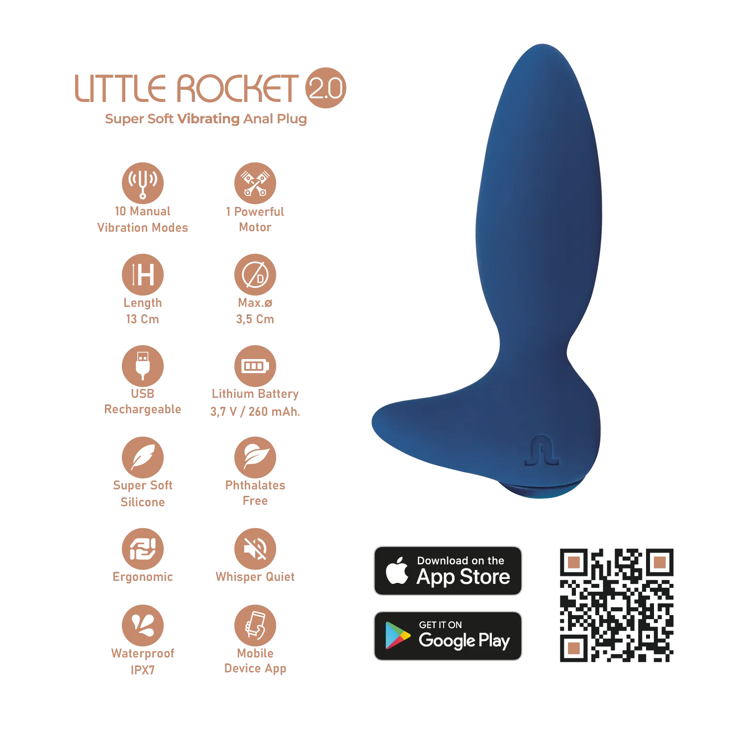 Вибратор для простаты Little Rocket II + APP. Изготовлен из мягкого силикона, обеспечивает двойную стимуляцию. Длина — 13 см, диаметр — 3,6 см, 10 режимов вибрации. Подходит для массажа простаты и точки P. Водонепроницаемость IPX7 позволяет использовать в воде. Управляется через приложение Adrien Lastic. Уход: промыть водой с мылом. Идеален для интенсивного удовольствия.