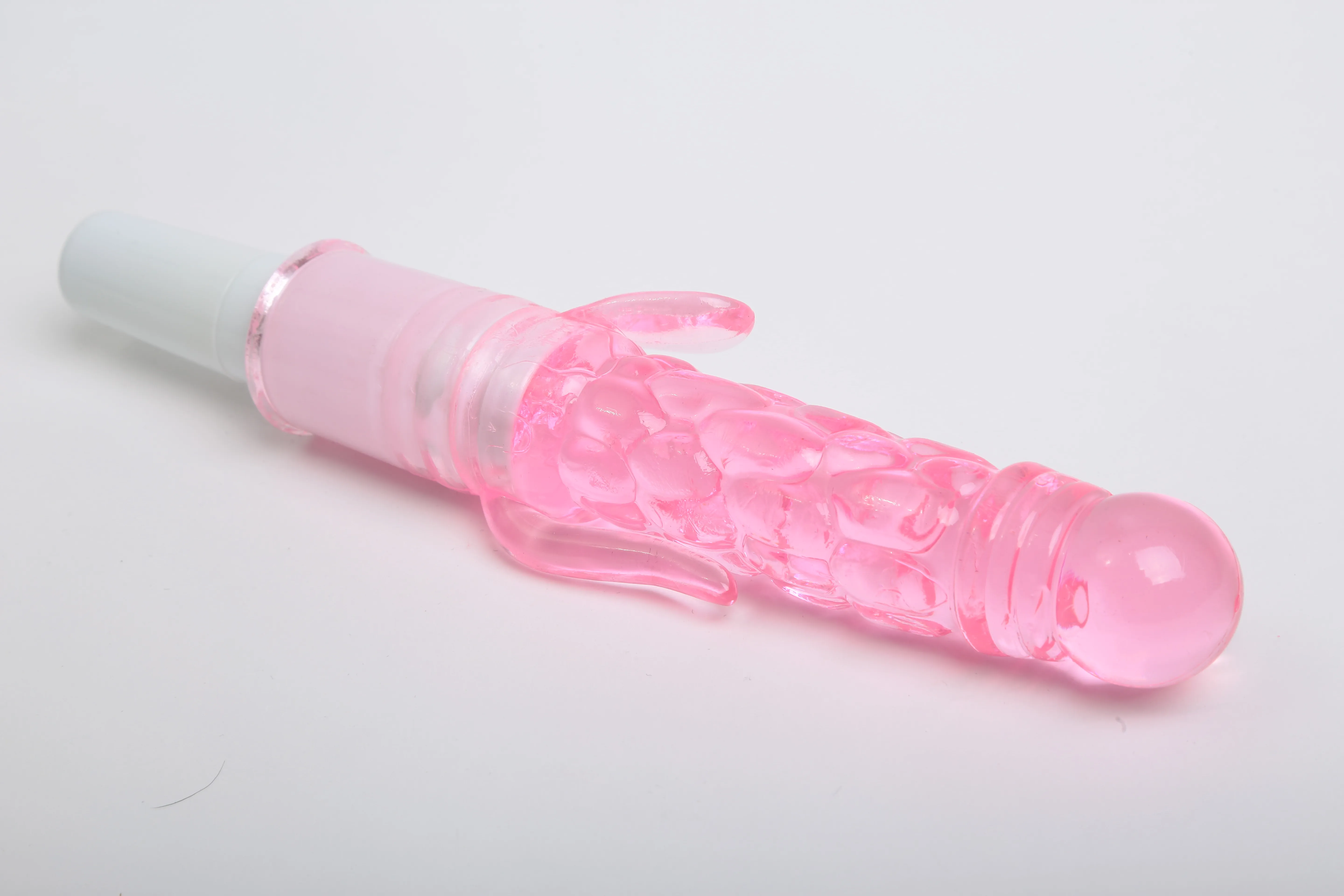 Вибратор розового цвета с двумя небольшими отростками. Изготовлен из TPR. Ребристая поверхность и ярко выраженная головка добавляют еще больше удовольствия. Имеет 1 скорость вибрации, которая удобно и плавно регулируются на ручке. Характеристики: общая длина - 21 см, рабочая длина - 10 см, максимальный диаметр — 2,7 см, длина отростков — 2 и 4 см, диаметр отростков — 0,8 см. Работает от 1АА батарейки (в комплект не входит). Упаковка: картонная коробка с принтом.