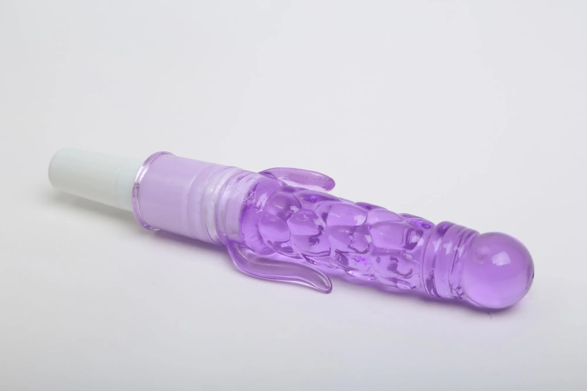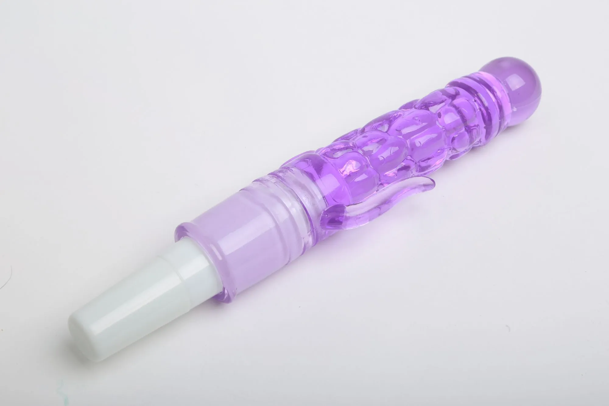 Вибратор пурпурного цвета с двумя небольшими отростками. Изготовлен из TPR. Ребристая поверхность и ярко выраженная головка добавляют еще больше удовольствия. Имеет 1 скорость вибрации, которая удобно и плавно регулируются на ручке. Характеристики: общая длина - 21 см, рабочая длина - 10 см, максимальный диаметр — 2,7 см, длина отростков — 2 и 4 см, диаметр отростков — 0,8 см. Работает от 1АА батарейки (в комплект не входит). Упаковка: картонная коробка с принтом.
