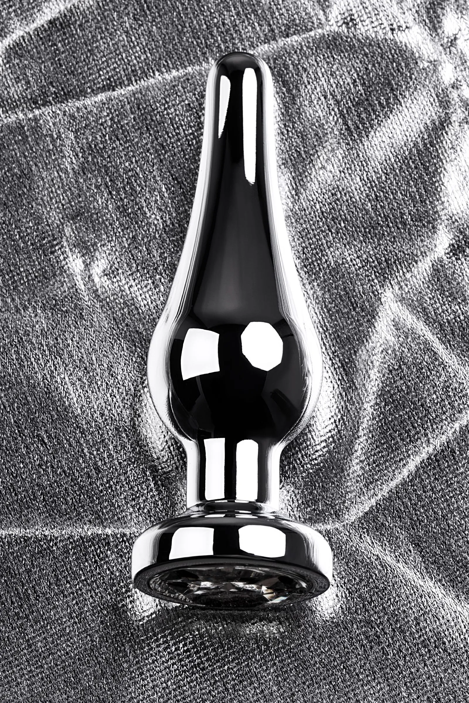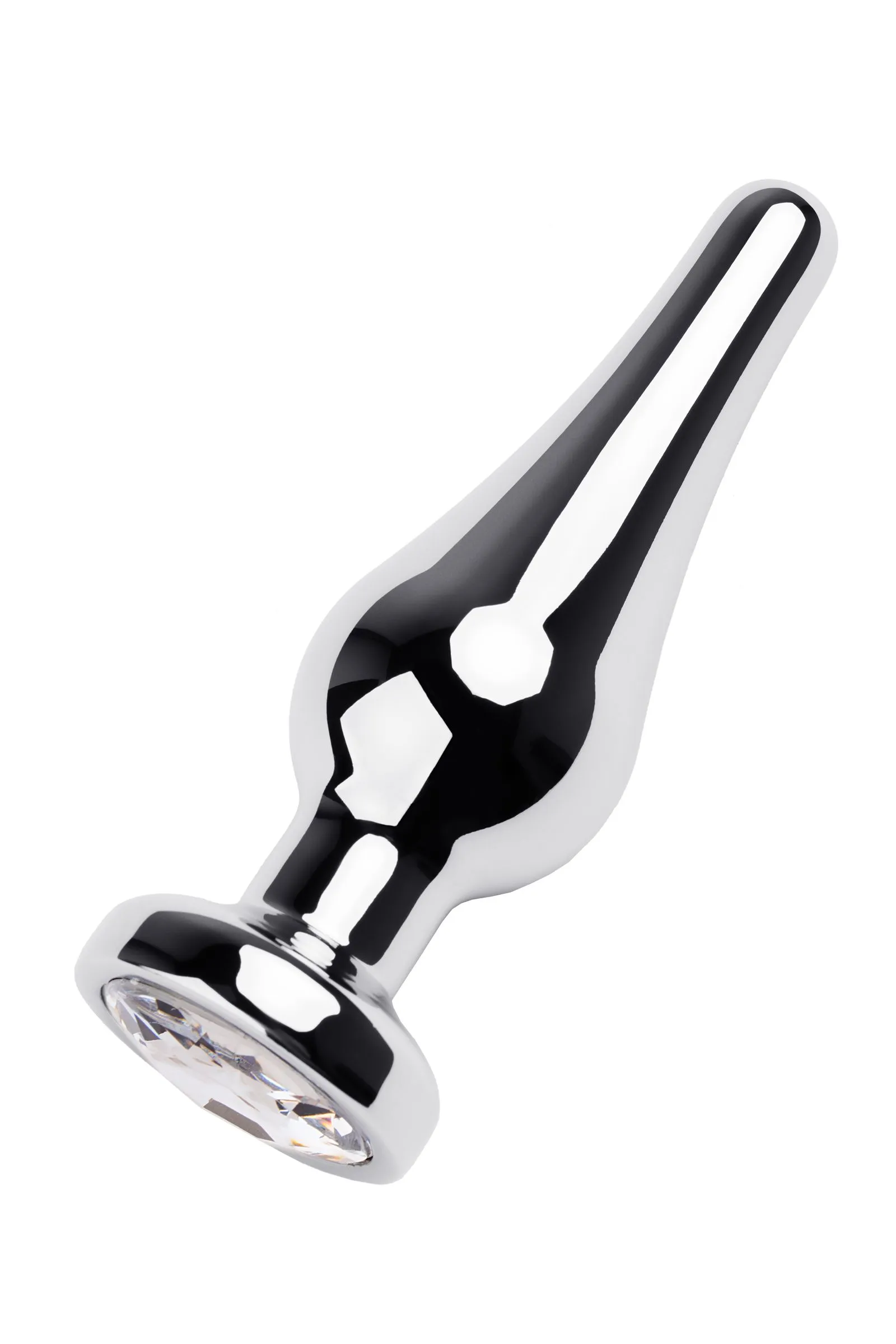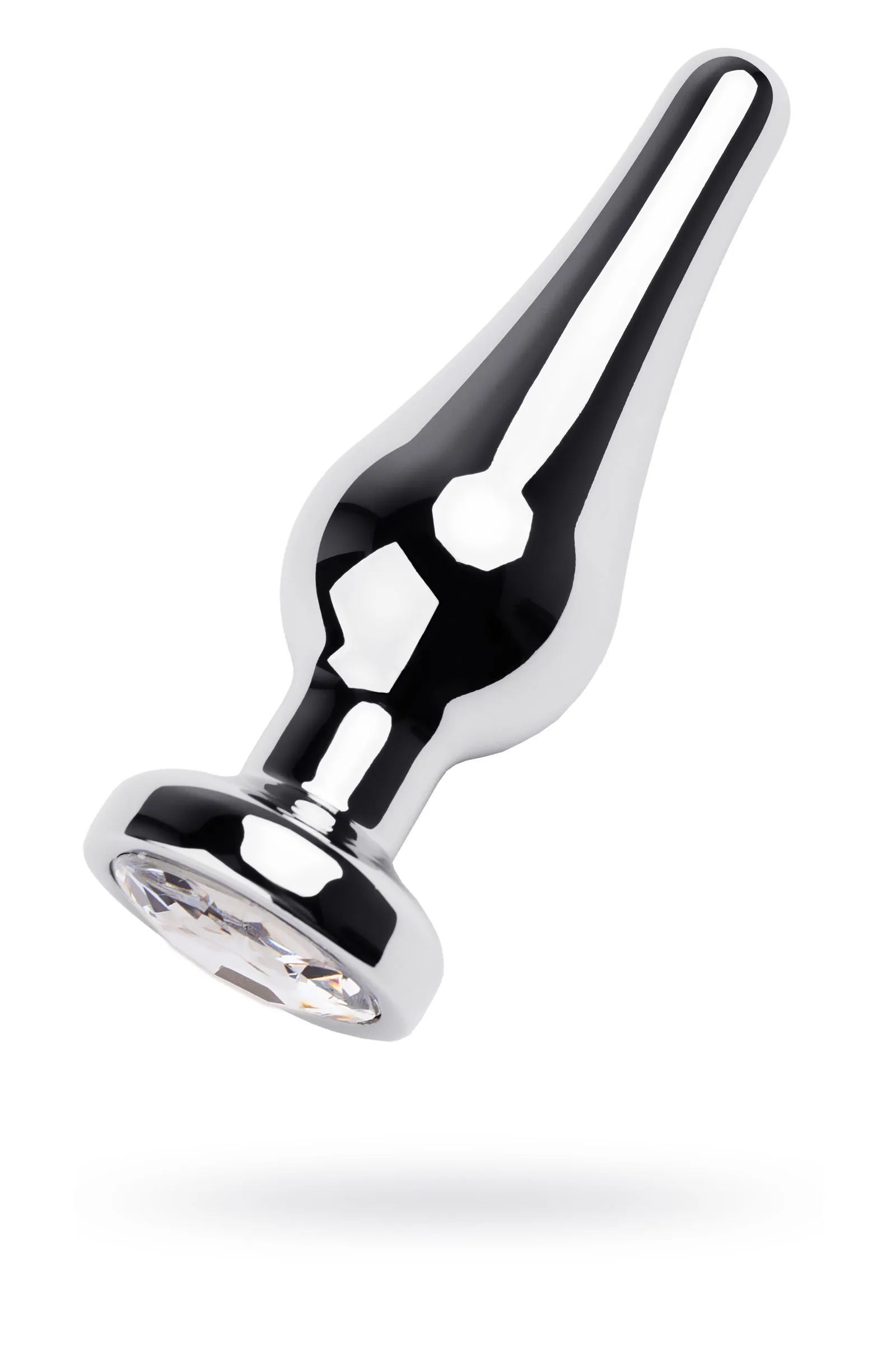 Анальная втулка Metal by TOYFA, металл, серебряная, с кристаллом цвета алмаз, 10 см, Ø 3 см, 95 г