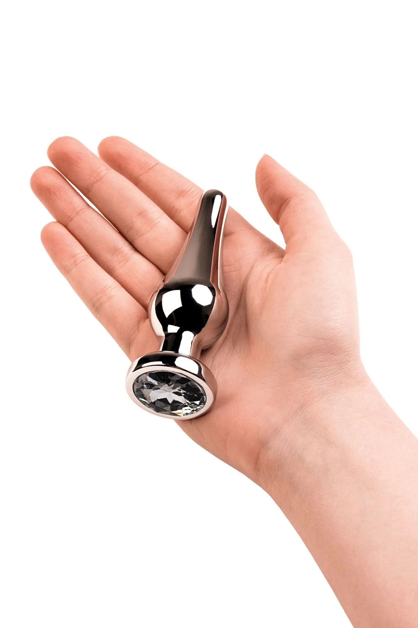 Серебристая втулка в виде наконечника стрелы со стразом цвета алмаз. Идеальная форма для ввода и удерживания внутри.