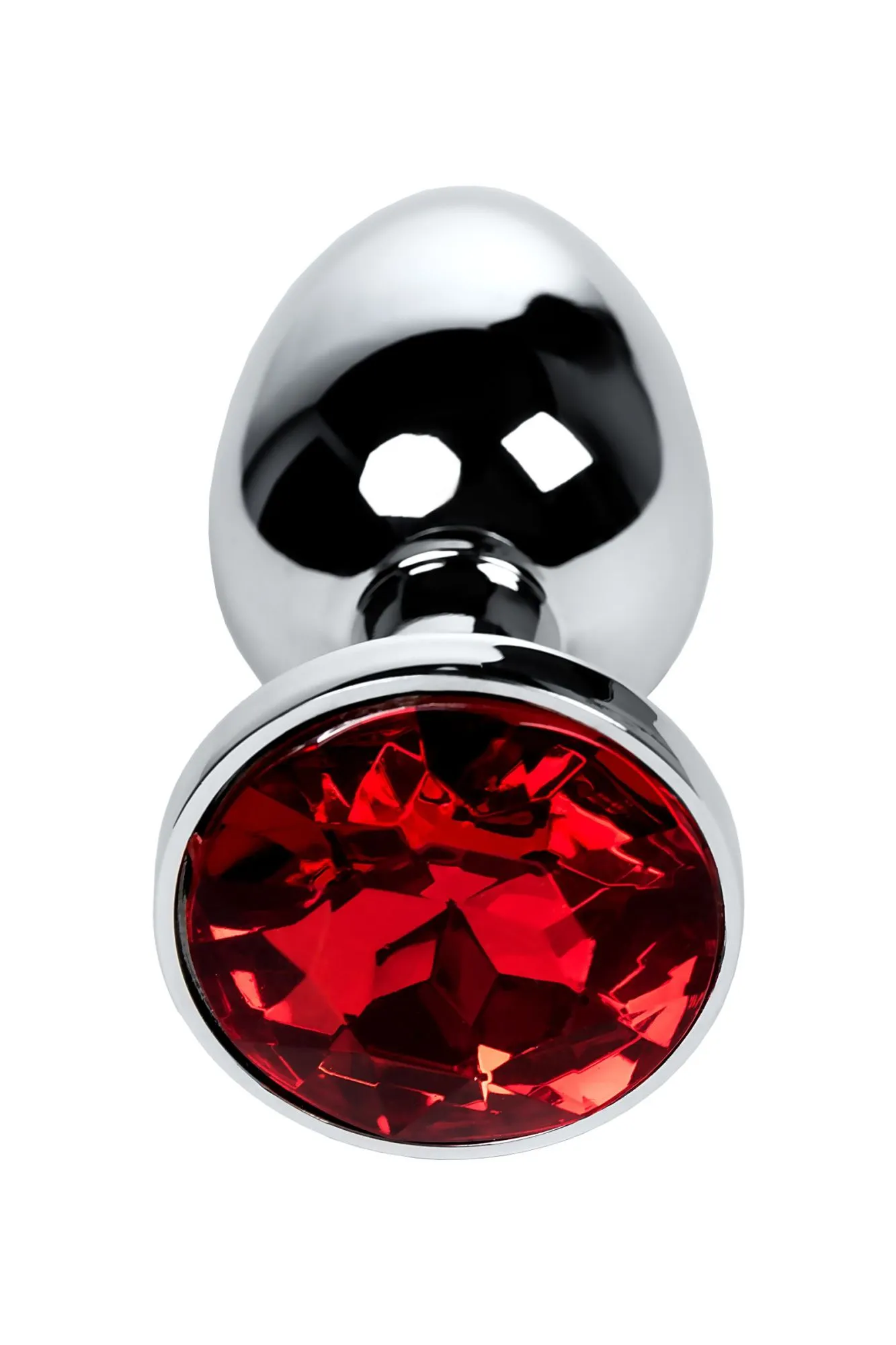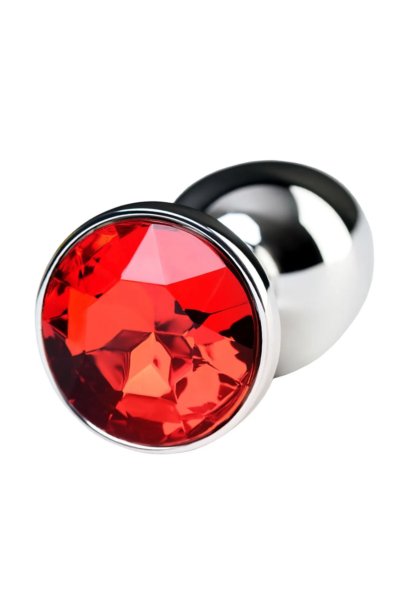 —Анальная втулка Metal by TOYFA, металл, серебряная, с красным кристаллом, 7,1 см, Ø 2,7 см, 150 г