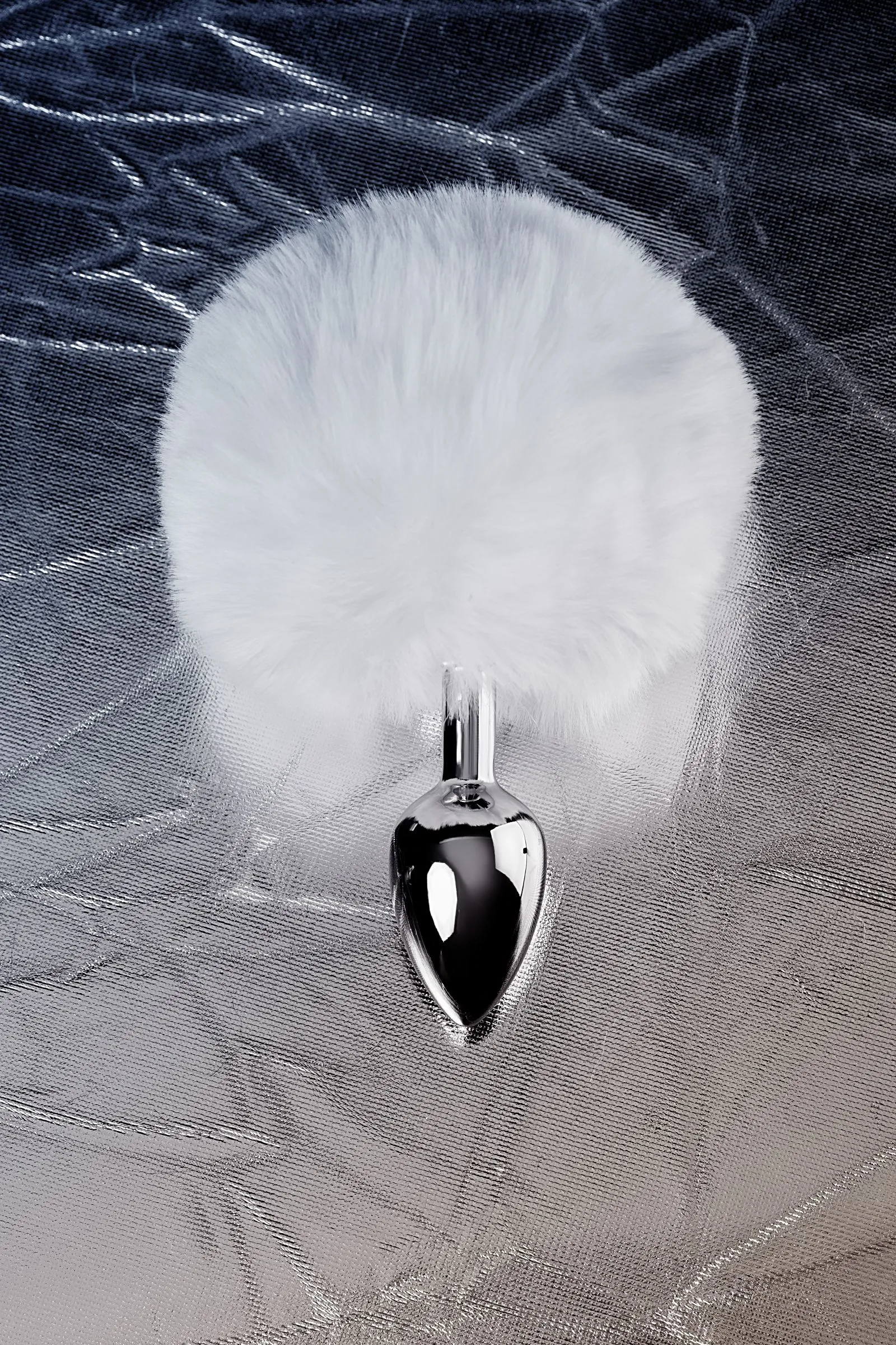 —Анальная втулка TOYFA Metal, маленькая, металл+искусственный мех, серебряная, с белым хвостиком, 4,