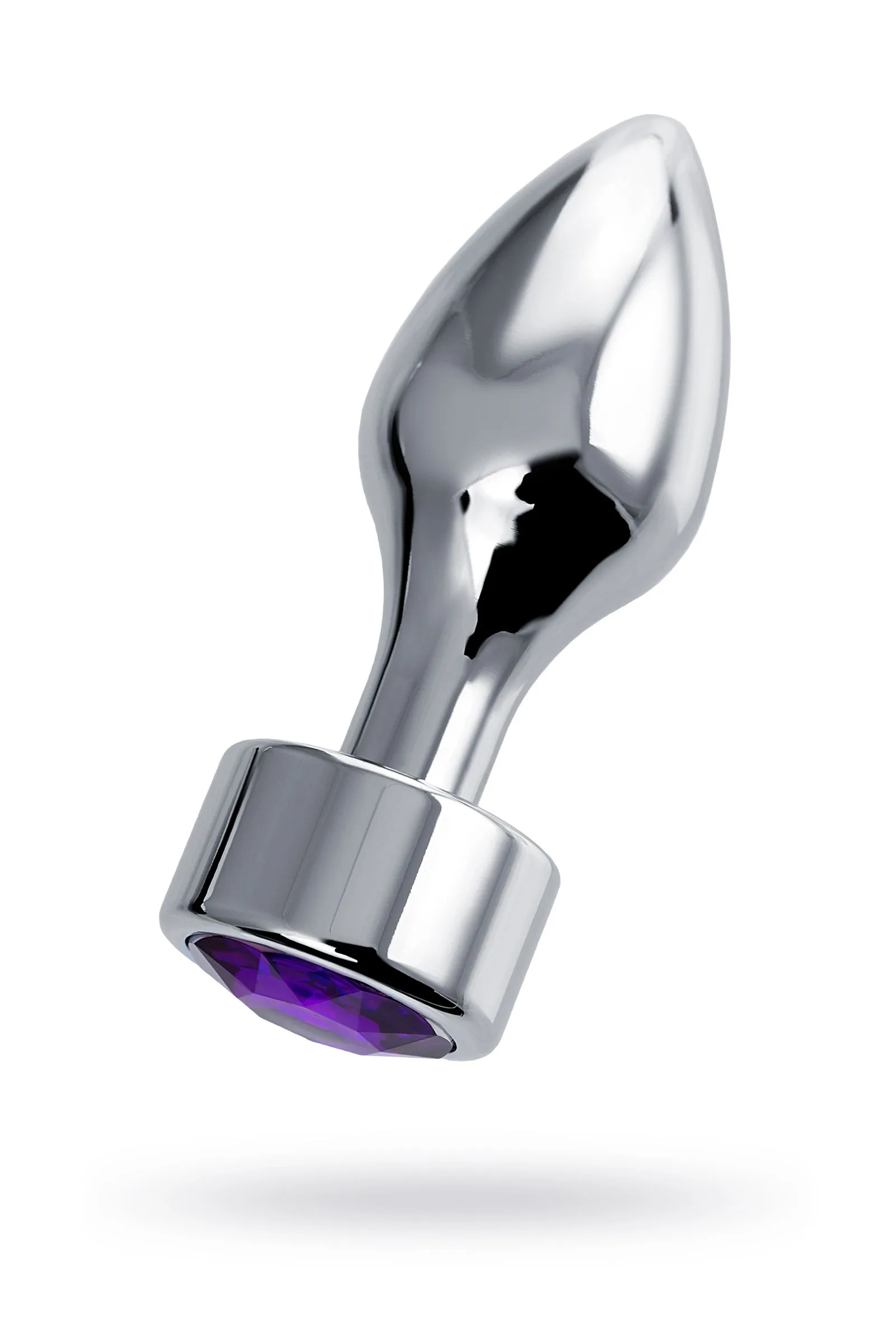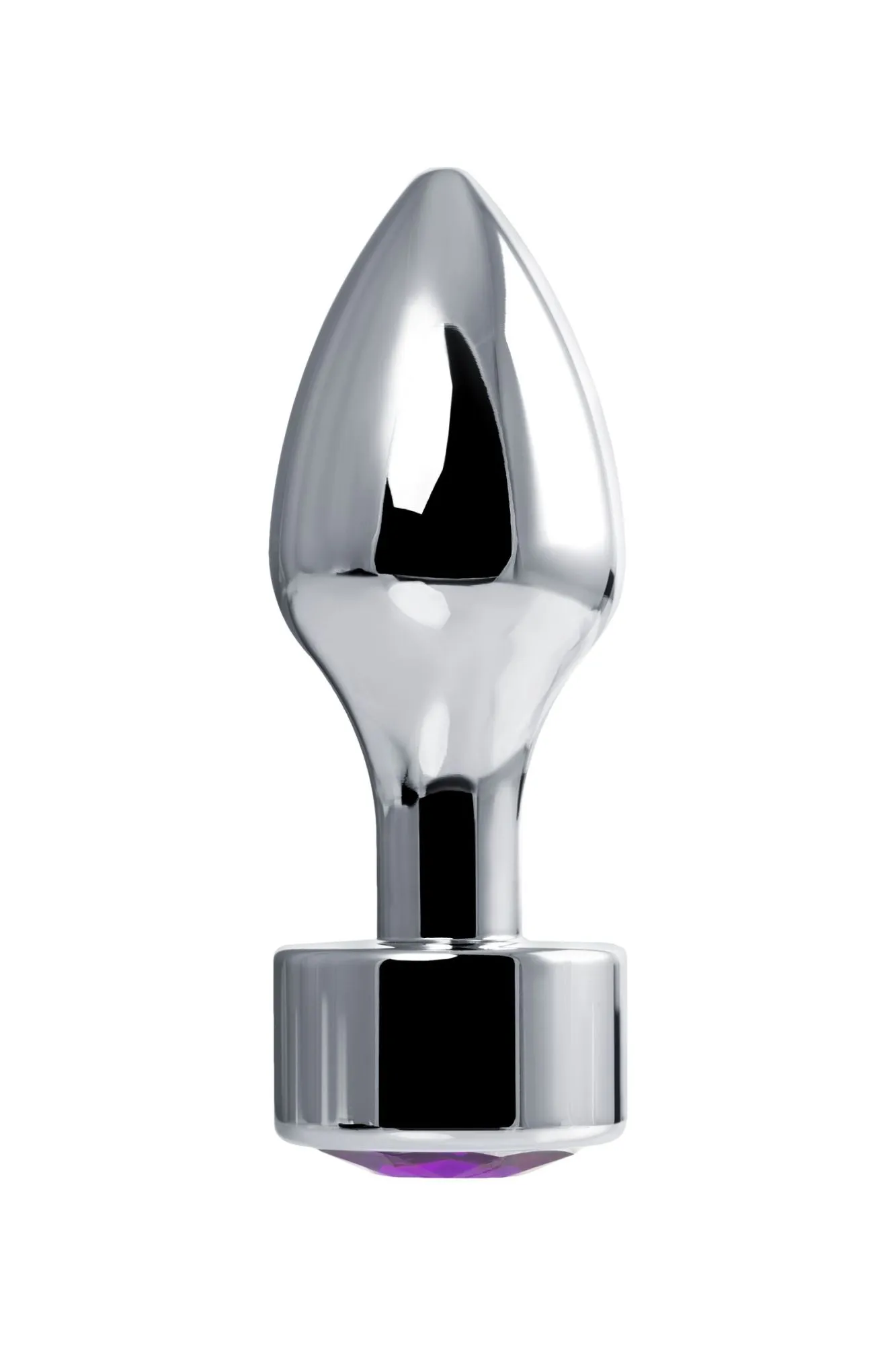 —Анальная втулка Штучки-дрючки, металл, серебряная, с кристаллом фиолетовым, 9,5 см, Ø 3,5 см, 130