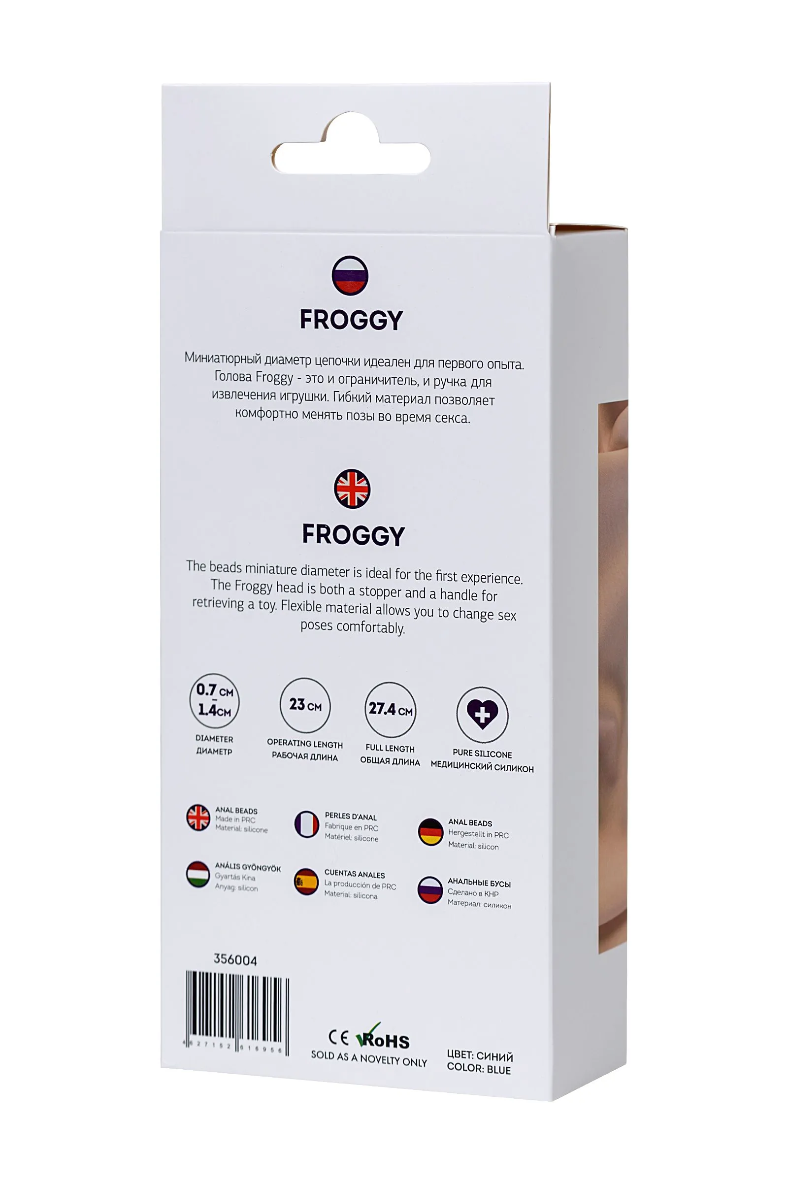 Froggy Миниатюрный диаметр цепочки идеален для первого опыта. Голова Froggy — это и ограничитель, и ручка для извлечения игрушки. Гибкий материал позволяет комфортно менять позы во время секса.