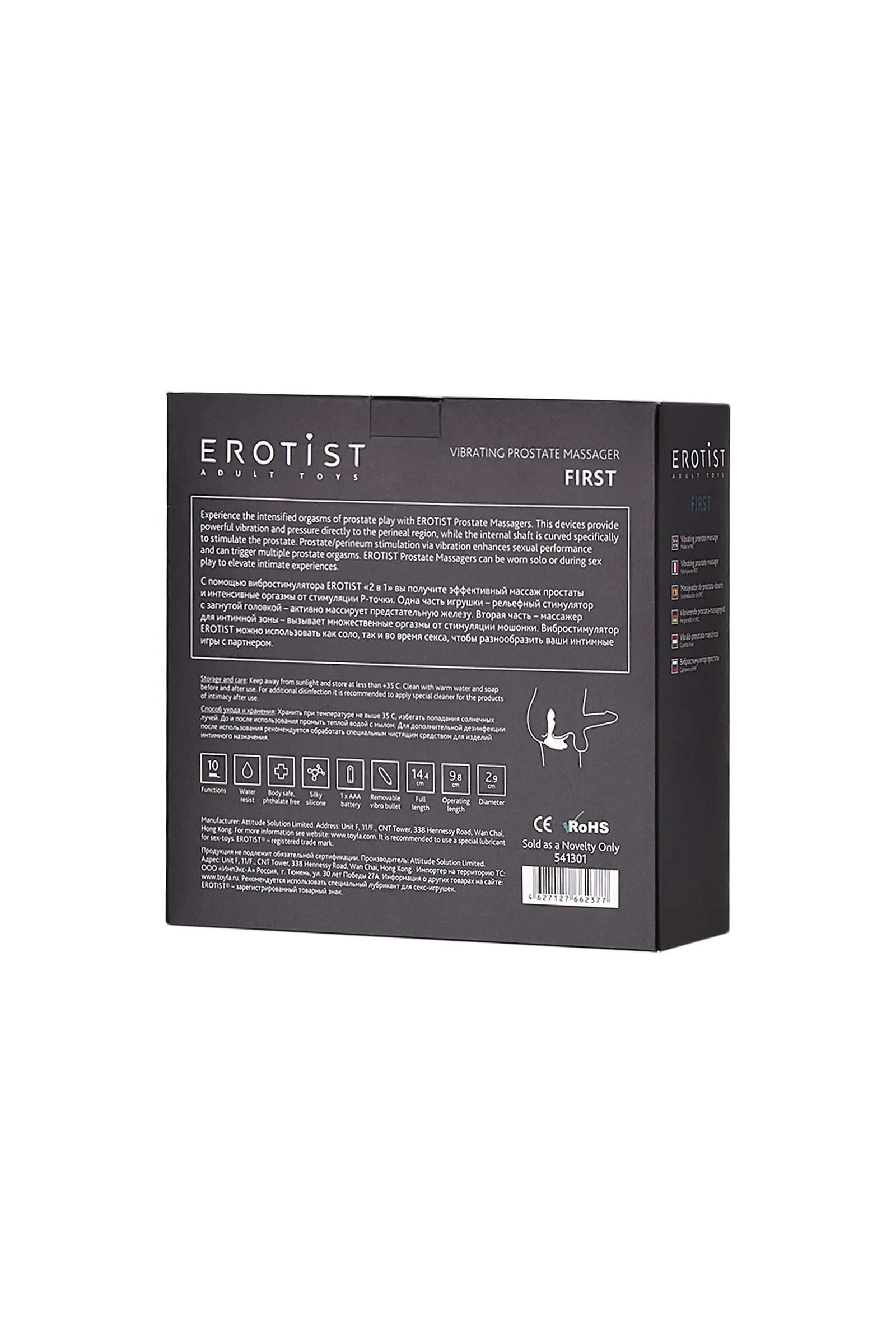 —Стимулятор простаты Erotist First, силикон, черный, 14,4 см