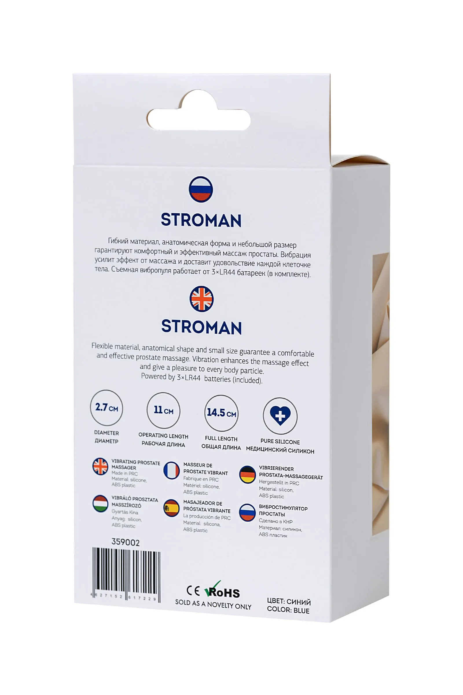 Stroman Гибкий материал, анатомическая форма и небольшой размер гарантируют комфортный и эффективный массаж простаты. Вибрация усилит эффект от массажа и доставит удовольствие каждой клеточке тела. Съемная вибропуля работает от 3×LR44 батареек (в комплекте).