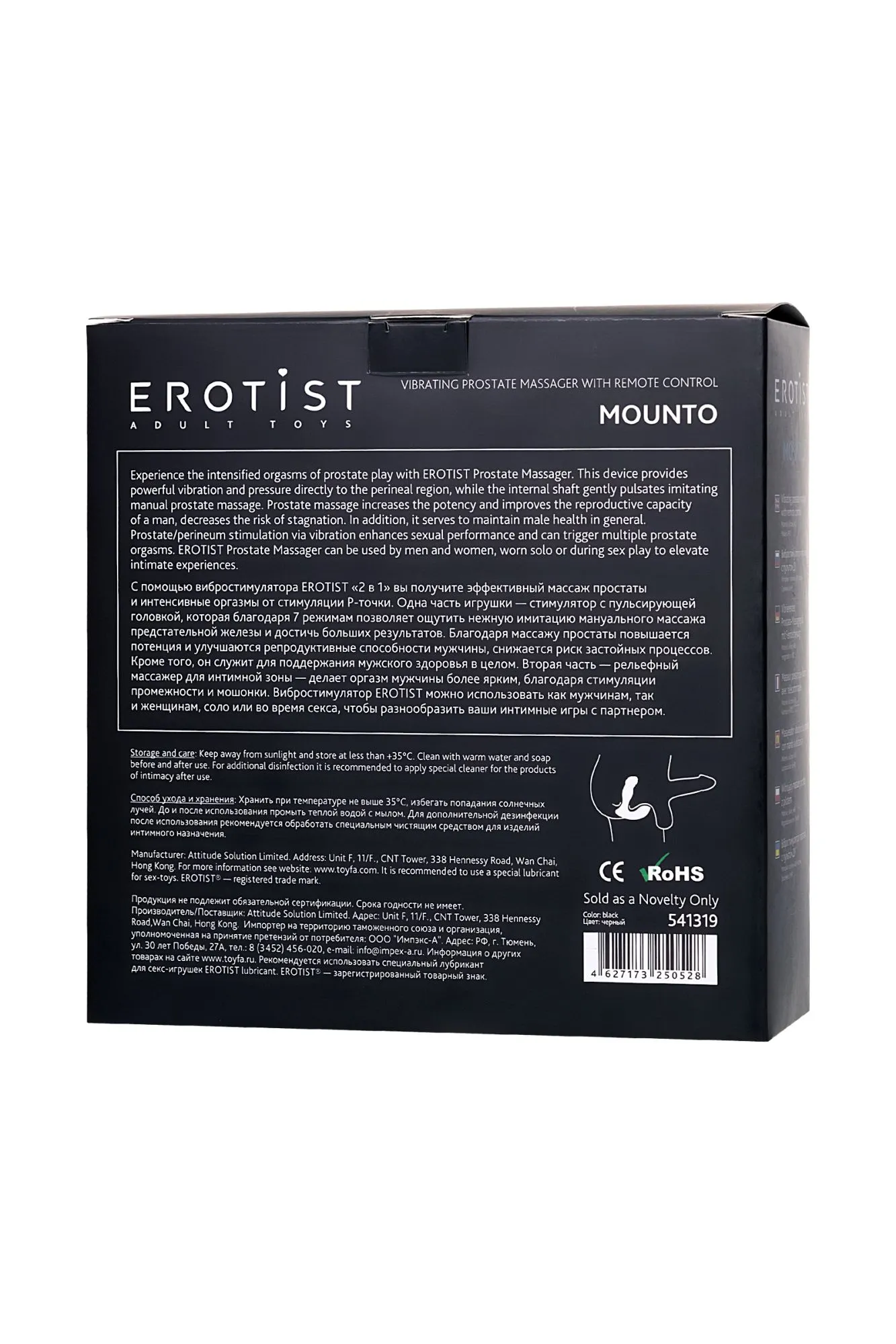 Вибростимулятор простаты с пультом ДУ Erotist Mounto, силикон, черный, 13,2 см