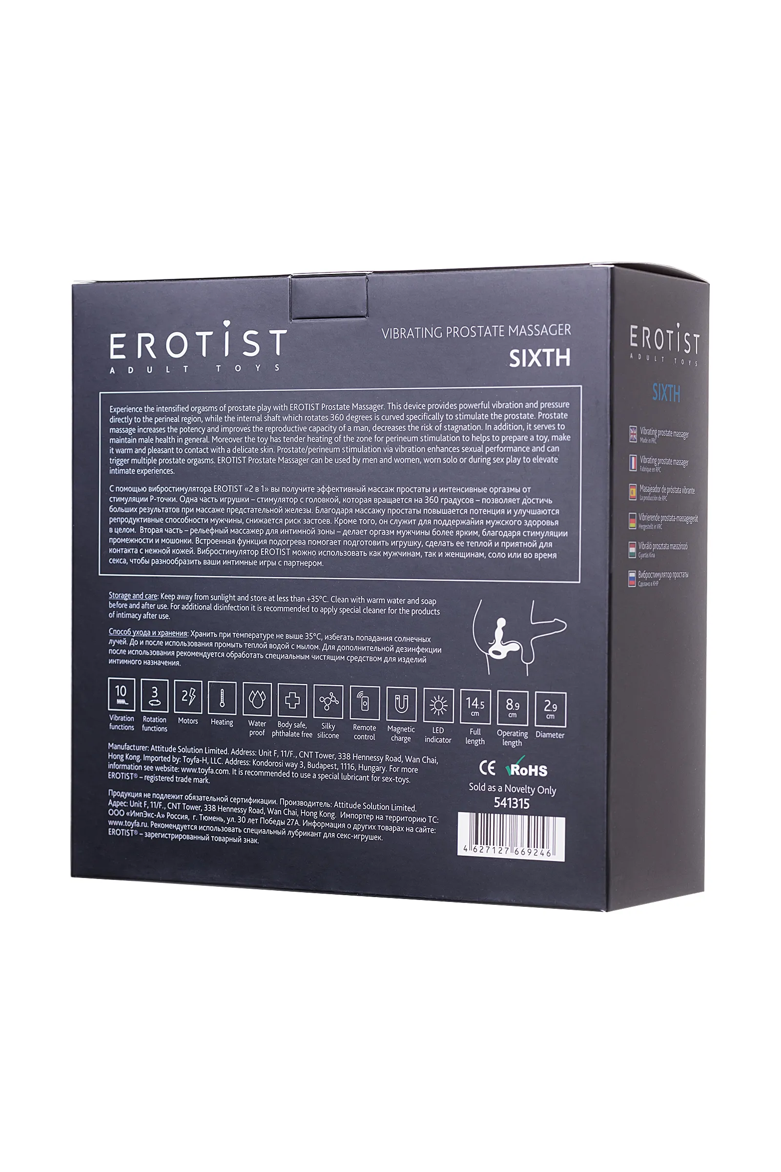 С помощью вибростимулятора EROTIST «2 в 1» вы получите эффективный массаж простаты и интенсивные оргазмы от стимуляции P-точки. Одна часть игрушки —стимулятор с головкой, которая вращается на 360 градусов — позволяет достичь больших результатов при массаже предстательной железы. Вторая часть — рельефный массажер для интимной зоны — делает оргазм мужчины более ярким, благодаря стимуляции промежности и мошонки. Встроенная функция подогрева помогает подготовить игрушку, сделать ее теплой и приятной для контакта с нежной кожей. Вибростимулятор EROTIST можно использовать как соло, так и во время секса, чтобы разнообразить ваши интимные игры с партнером.