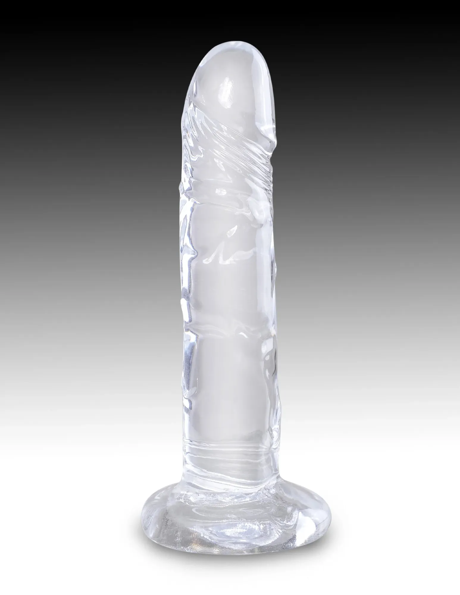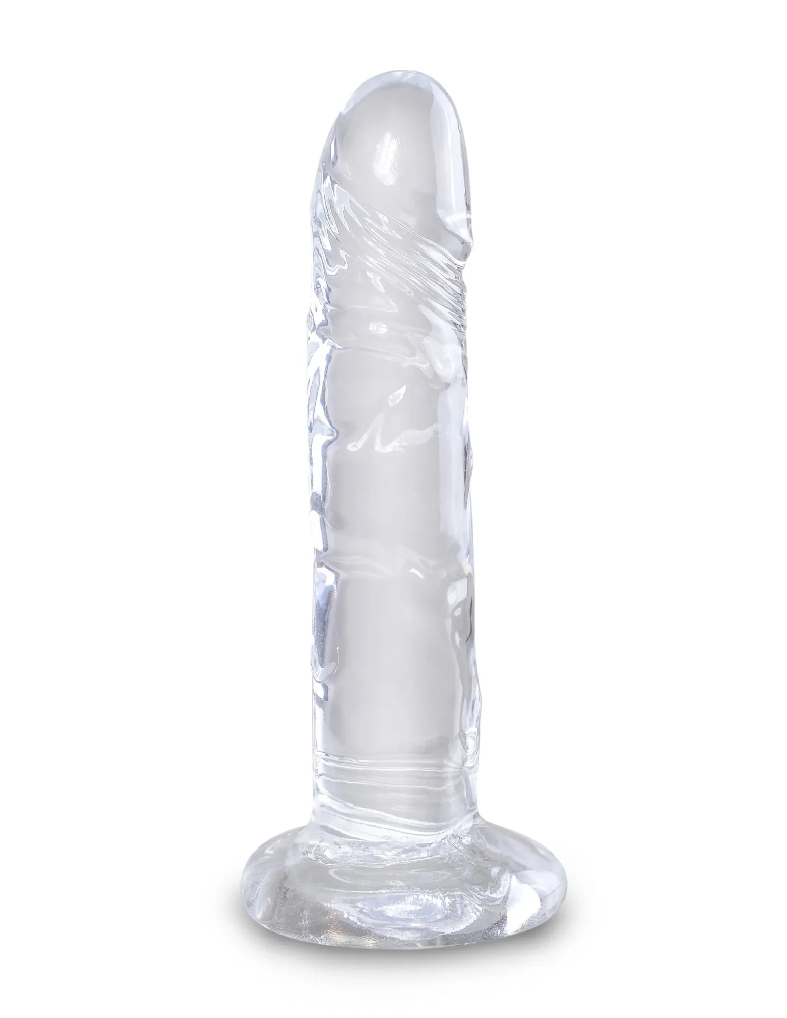 Фаллоимитатор King Cock Clear из прозрачного TPE (длина около 16 см). Гибкий ствол с деталями, присоска совместима с трусами для страпона. Без запаха, вес 0,31 кг. Легко чистить. Диаметр присоски - 7 см