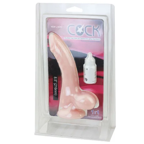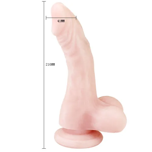 Фалоимитатор телесного цвета с мошонкой. Имеет ярко выраженную головку, прорисованные вены и хребет, который позволяет прининимать удобный угол наклона. В основании имеется присоска. Общая длина - 22 см, рабочая длина - 15 см, максимальный диаметр 4 см. Смазка в комплект не входит.