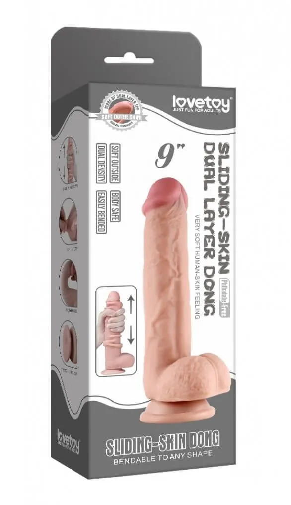Фаллоимитатор 9 inch Sliding Skin Dual Layer Dong от бренда Lovetoy позволит Вам получить максимально естественные ощущения во время любовной игры. Это возможно благодаря его невероятно детализированным головке, стволу с выпуклыми венками и крупной мошонке, которые делают его так похожим на настоящий член. Кроме того, фаллос сделан из двухслойного материала, поэтому внутри он жесткий и упругий, а снаружи - мягкий и нежный. Одной из особенностей фаллоимитатора является то, что его "кожу" можно сдвигать - она будет скользить вверх-вниз при движении Вашей руки совсем как настоящая. Также он достаточно гибок, благодаря чему легко примет нужную Вам форму. В основании фаллоса есть мощная присоска, которая позволит прикрепить его к любым ровным и твердым поверхностям.
