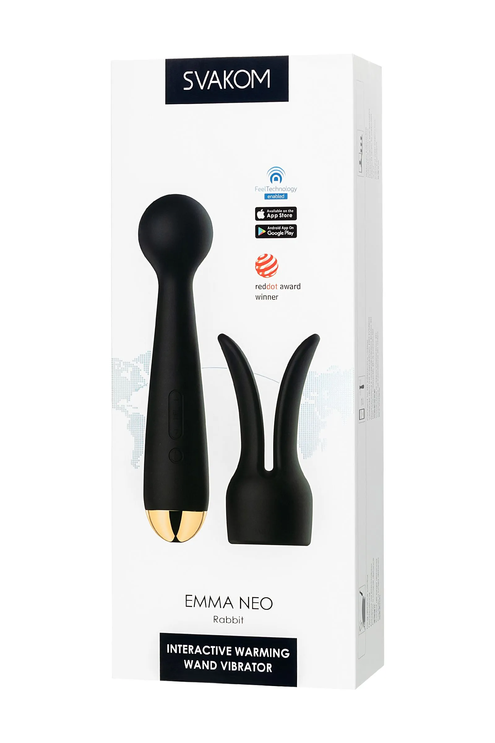 Svakom Emma Neo – это мощный, интерактивный, нагревающийся WAND-вибромассажер, с необычным дизайном. У игрушки гибкая головка и есть насадка в виде потрясающих кроличьих ушек. Используйте ее для массажа шеи, ушей, сосков и любых других чувствительных зон как самостоятельно, так и в паре. Будьте креативны и выведите любовную игру на новый уровень! Emma Neo поможет расслабиться после напряженного дня. Выберите подходящий режим и массируйте любые зоны, например шею и плечи. Emma Neo может нагреваться до 38°С, близкой к температуре человеческого тела. Воспользуйтесь этой функцией, чтобы согреться холодными вечерами. Мощный, но при этом тихий мотор, время работы без подзарядки до 4 часов, 5 скоростей вибрации, 5+1 режим – это все про Emma Neo! Игрушку легко мыть, погружая в воду только силиконовую часть. Emma Neo работает через Bluetooth, управляется с помощью приложений FeelConnect 3 и Svakom App на телефоне. Используйте его как хотите и с кем хотите! Если вы хотите использовать у игрушки классические режимы или синхронизировать вибрацию с музыкальными треками – функциями можно управлять через Svakom App. Если интересна тема теледильдоники, хочется попробовать игрушку с управлением на расстоянии, попробовать синхронизировать вибрацию с любимым порно-роликом, то тогда управлять можно через Feel Connect 3. Svakom Emma Neo - это воплощение заботы, элегантности, моды и интеллекта. Материал: безопасный для тела силикон + ABS Режимы вибрации: 6 Интенсивность: 5 Размер: 4,8 см × 21 см Вес: 210 г Цвет: черный Режим нагревания: да Заряжается: USB Время зарядки: 2 часа Используемое время: 48 часов Водонепроницаемость: IPX4 защита от брызг Интерфейс: Bluetooth В комплекте: Вибратор Emma Neo, насадка-ушки, мешочек для хранения, зарядный кабель USB, гарантийный талон, руководство. Страна бренда: США