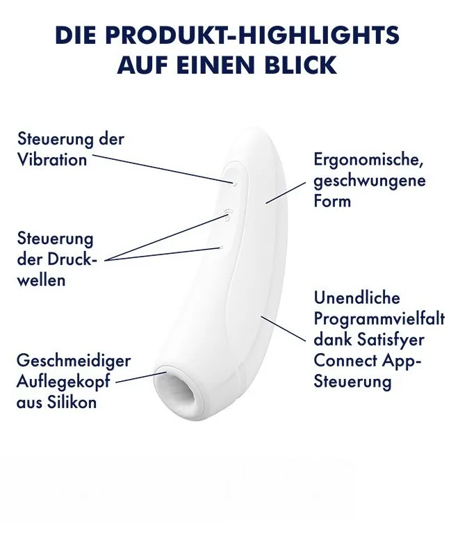 Благодаря эргономично изогнутой форме Satisfyer Curvy 1+ идеально лежит в руке. Изготовленный из медицинского силикона стимулятор обладает гладкой, приятной на ощупь поверхностью.