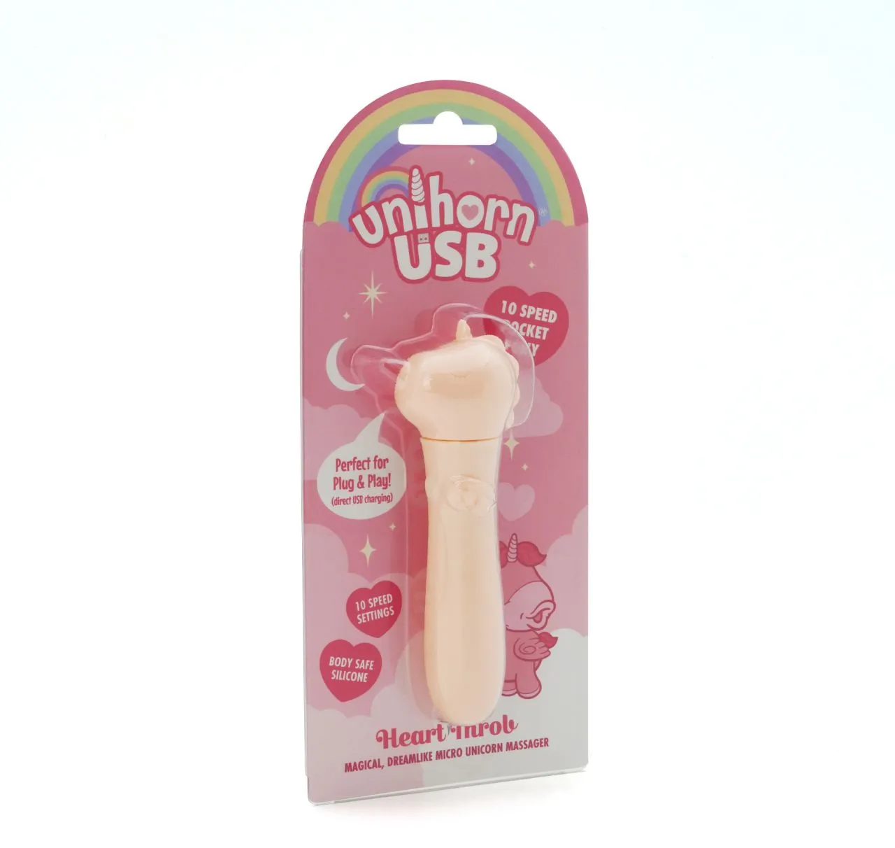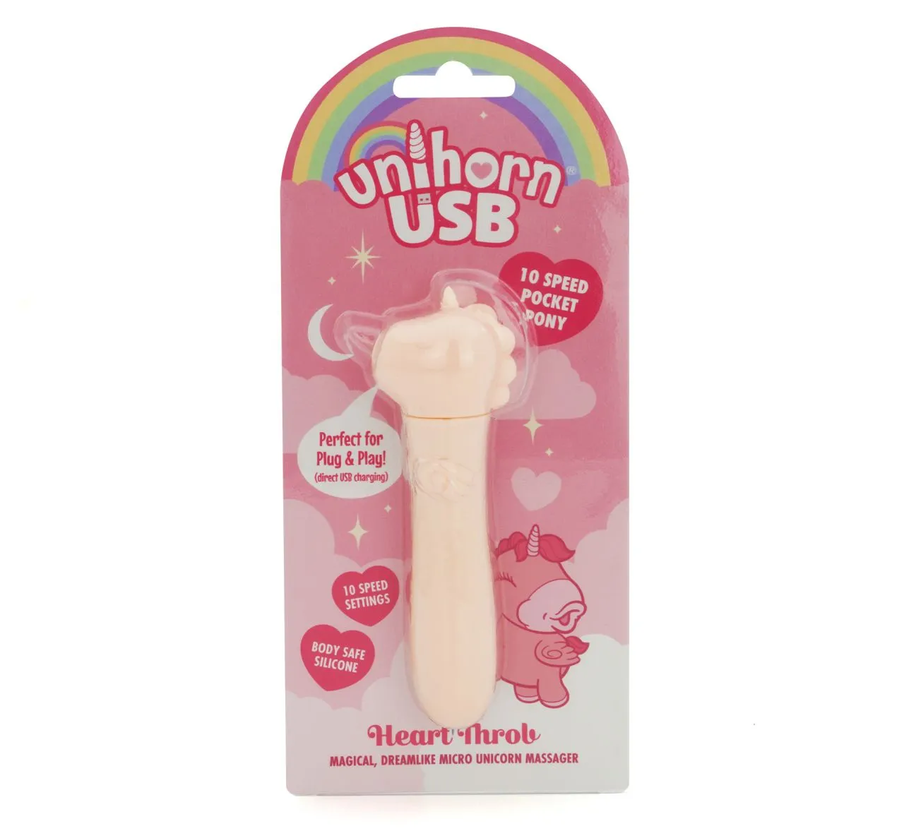 Откройте для себя свою настоящую любовь с помощью Heart Throb Unihorn USB, в котором гармонично сочетаются причудливое очарование и мощная производительность! Эта очаровательная вибропуля в виде единорога - ваш сказочный спутник для ненавязчивого удовлетворения в дороге. Его шелковистый, безопасный для тела силикон и 10 очаровательных скоростных режимов доставят вам незабываемые ощущения, куда бы вы ни отправились в своих приключениях.