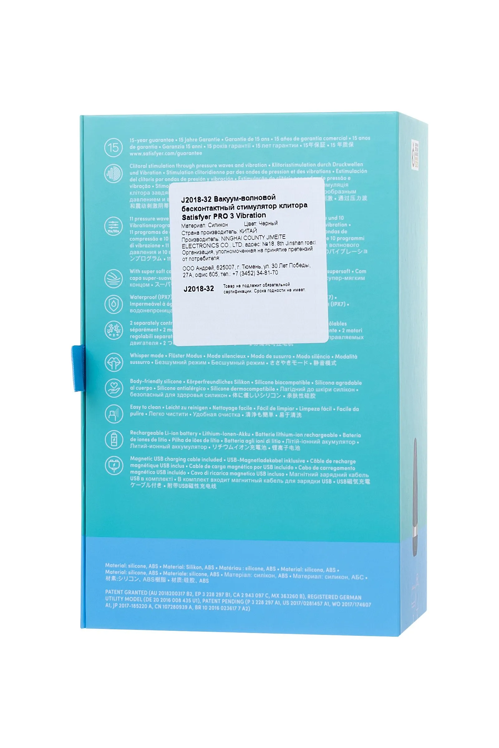 —Вакуум-волновой бесконтактный стимулятор клитора Satisfyer PRO 3 Vibration, силикон, черный, 14 см.