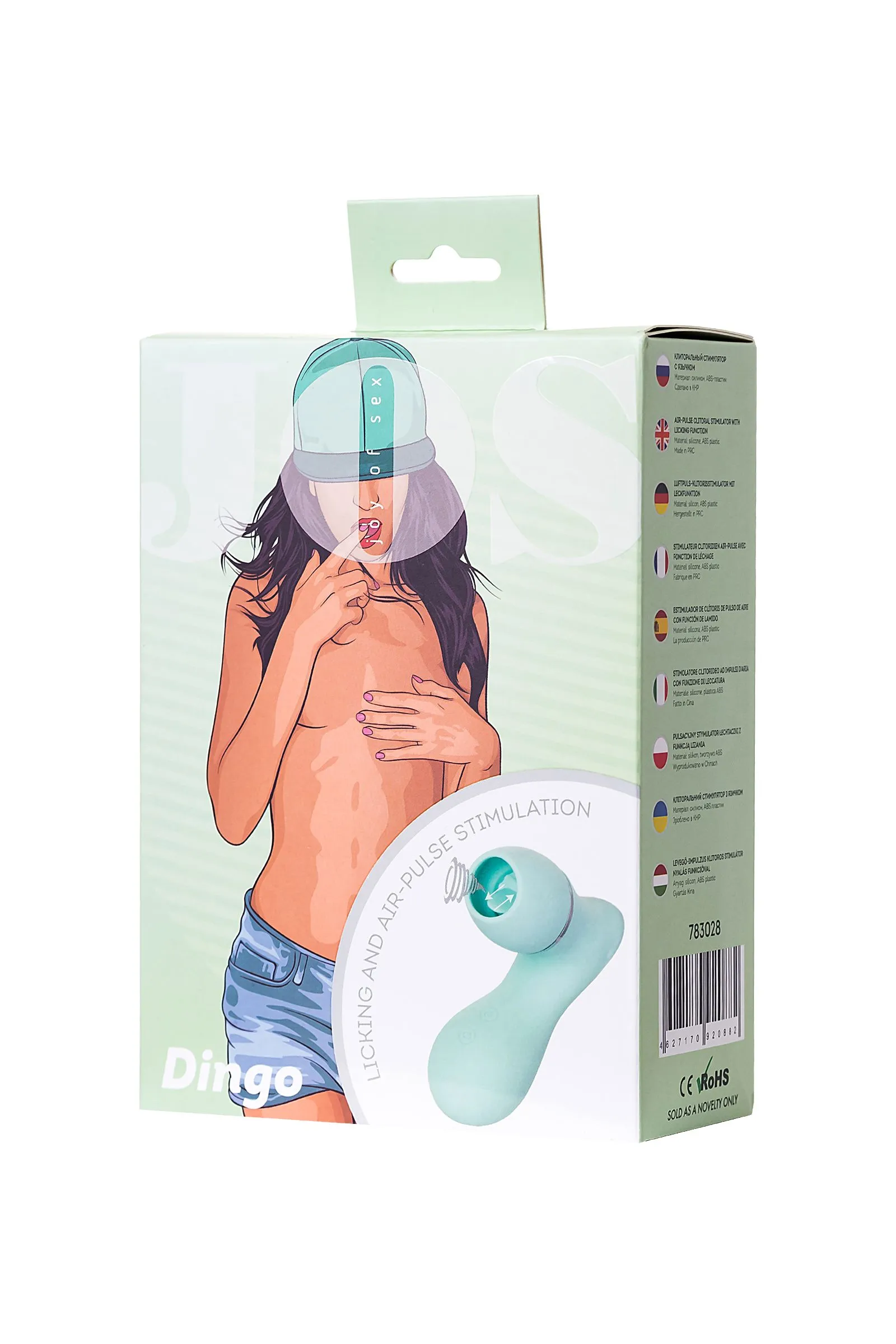 Вакуумный стимулятор клитора с язычком JOS DINGO, силикон, голубой, 9,5 см