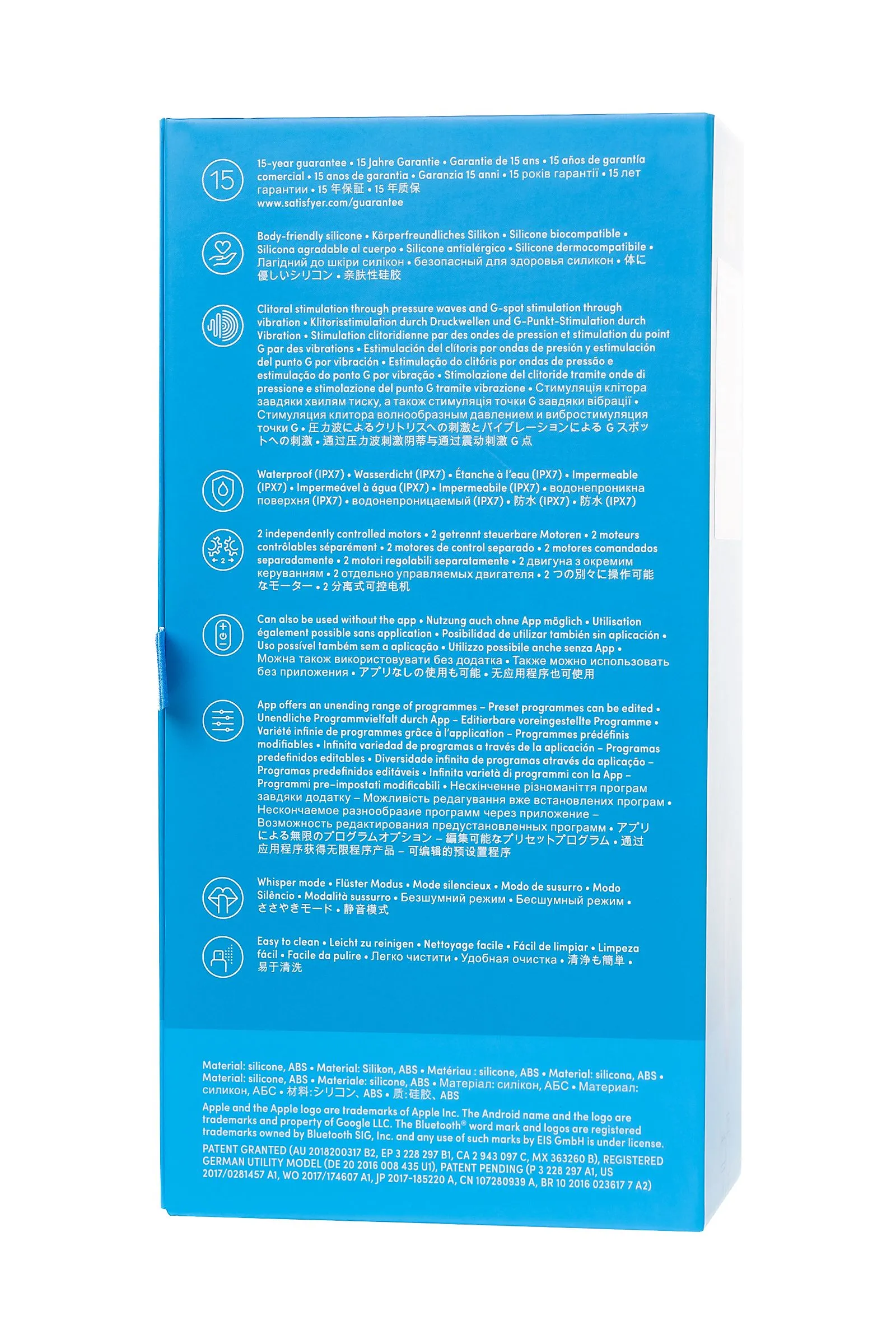 Вакуумно-волновой стимулятор Satisfyer Dual Pleasure имеет эргономичную форму, очень удобную для удержания в руке и не скользит. Девайс сочетает в себе интенсивную бесконтактную стимуляцию клитора под воздействием волны давления, а его другая сторона отлично создает чувственную вагинальную вибрацию и стимуляцию точки G, благодаря загнутой формы. Satisfyer Dual Pleasure имеет две функции: фирменная воздушно-волновая стимуляцию Satisfyer Air Pulse, а его другая сторона отлично создает чувственную вагинальную вибрацию. Вы можете перевернуть аксессуар и использовать рукоятку в роли вагинального вибратора. Управлять устройством очень просто. Верхняя кнопка отвечает за включение девайса и установку Bluetooth-соединения. Нижняя кнопка позволяет выбрать из 10 режимов вибрации, а средняя — переключить 11 режимов волновой стимуляции. Вакуумной стимуляцией и вибрацией можно управлять по отдельности. Независимо от того, какой вариант вы выберете, вам гарантированы незабываемые оргазмы, особенно благодаря ультрамягкой головке, которая очень нежно прижимается к клитору. Satisfyer Dual Pleasure может управляться при помощи смартфона через приложение Satisfyer Connect доступное на Android и iOS. Вы можете также проявить фантазию и создавать свои собственные, уникальные режимы стимуляции. Девайс поддерживает режим преобразования звуков в вибрацию, поэтому он способен вибрировать даже в такт музыке. Но и это не все - приложение для смартфона имеет функцию чата и даже позволяет передать управление игрушкой другому человеку дистанционно. Satisfyer Connect не имеет границ - в настоящее время поддерживается более 25 языков. Интегрированные функции чата / звонка и видеовызова гарантируют приятное интимное общение, к которому вы будьте готовы. Устройство полностью водонепроницаемо, поэтому с ним можно играть в ванной и душе. Чтобы получить максимум удовольствия и сохранить материал в наилучшем виде, рекомендуется пользоваться качественной смазкой на водной основе. После использования обязательно очищайте стимулятор теплой водой со специальными бактерицидными спреями для интимных товаров. Девайс работает от встроенного аккумулятора. Заряжается в течение 1,5 часов, а время работы от полного заряда составляет 1 час. Особенности: Управление через приложение или кнопками на самом устройстве. 10 режимов вибрации и 11 режимов волновой стимуляции. Изготовлена из мягкого, эластичного силикона без запаха, без аллергенов и вредных для здоровья веществ. 100% водонепроницаемый - IPX7. Время работы 1 час. Перезаряжаемый.