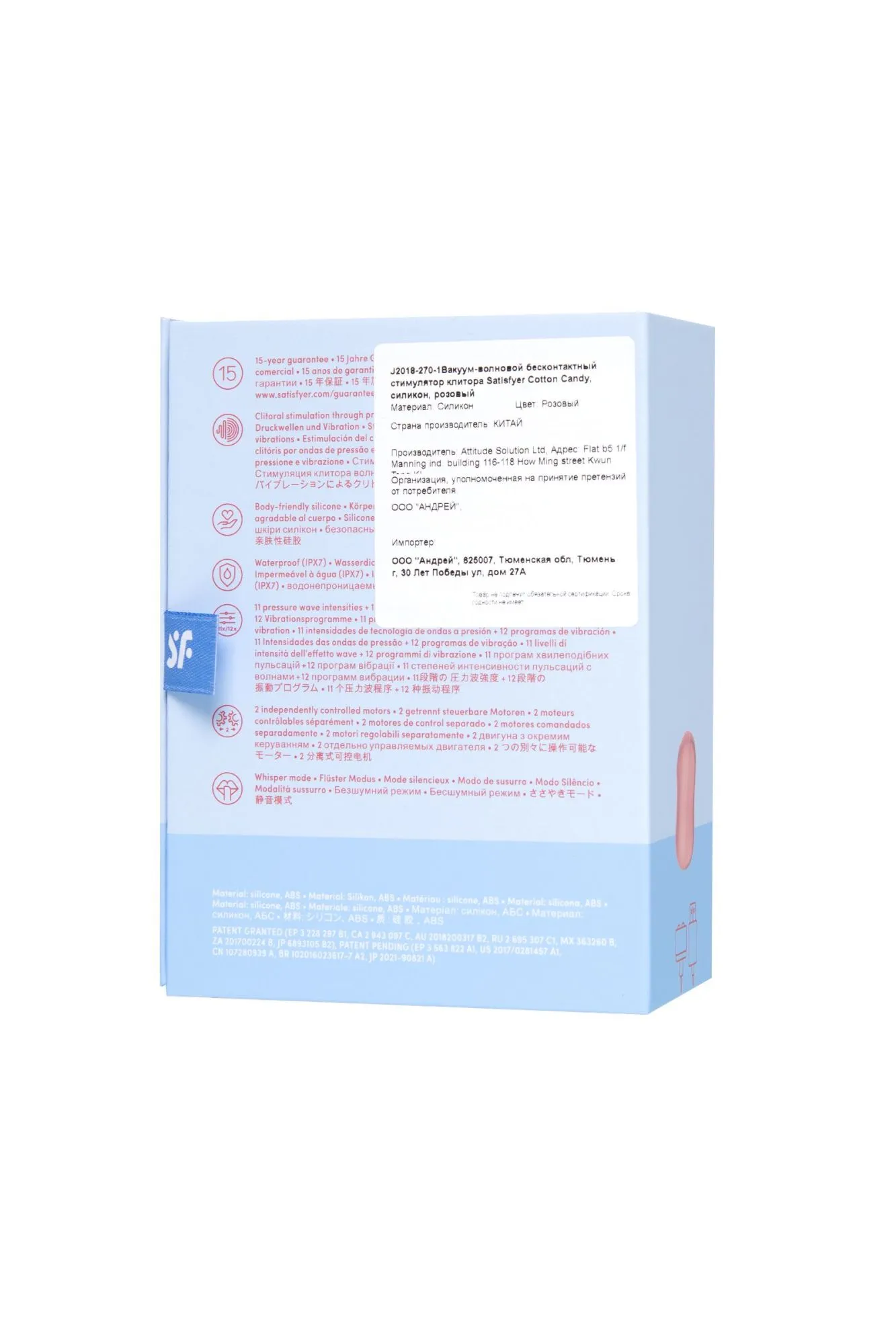 Симпатичный клиторальный стимулятор с вибрацией Cotton Candy от Satisfyer может стать первой игрушкой с которой вы начнете свои эксперименты в области получения оргазмов. Компактный розовый Cotton Candy для наружной стимуляции клитора обладает двумя автономными моторами. Комбинируйте воздушную пульсацию и проникающие волны вибрации, чтобы достигать неземного блаженства каждый раз. Бесконтактная стимуляция клитора – новейшая запатентованная технология Air Pulse для женских оргазмов. В вашем распоряжении 11 уровней интенсивности вакуум-волновой стимуляции и 10 программ вибрации – от нежной до интенсивной. Интуитивно понятное управление с помощью трех кнопок на корпусе. Стимулятор имеет овальную эргономичную форму, которая позволяет ему удобно располагаться в руках. Благодаря нежному материалу, из которого выполнен Cotton Candy, вам будет комфортно и приятно держать его в руках и получать удовольствие от его вибрации и пульсации. Идеальный размер, чтобы брать любимый стимулятор в дорогу. Стильный и качественный гаджет создан для эстетического и сексуального удовольствия. Потрясающий шелковистый на ощупь высококачественный гипоаллергенный силикон – визитная карточка бренда Satisfyer. Поверхность раструба мягко и деликатно стимулирует клиторальную область, тактильно нежный и приятный на ощупь, силикон быстро адаптируется к температуре вашего тела. Чтобы получить максимум удовольствия и сохранить материал в наилучшем виде, рекомендуется пользоваться качественной смазкой на водной основе. После использования обязательно очищайте игрушку теплой водой со специальными бактерицидными спреями для интимных товаров. Особенности: Возможность одновременного воздействия на клитор воздушной пульсацией и вибрацией Управление кнопками на корпусе. 10 режимов вибрации и 11 режимов волновой стимуляции. Насыщенный розовый цвет и мягкий, эластичный силикон без запаха, без аллергенов и вредных для здоровья веществ. Идеальный вариант для первой игрушки, подарка и путешествий. 100% водонепроницаемый - IPX7. Время работы 60 минут. Перезаряжаемый, USB-кабель, время зарядки 3 часа.