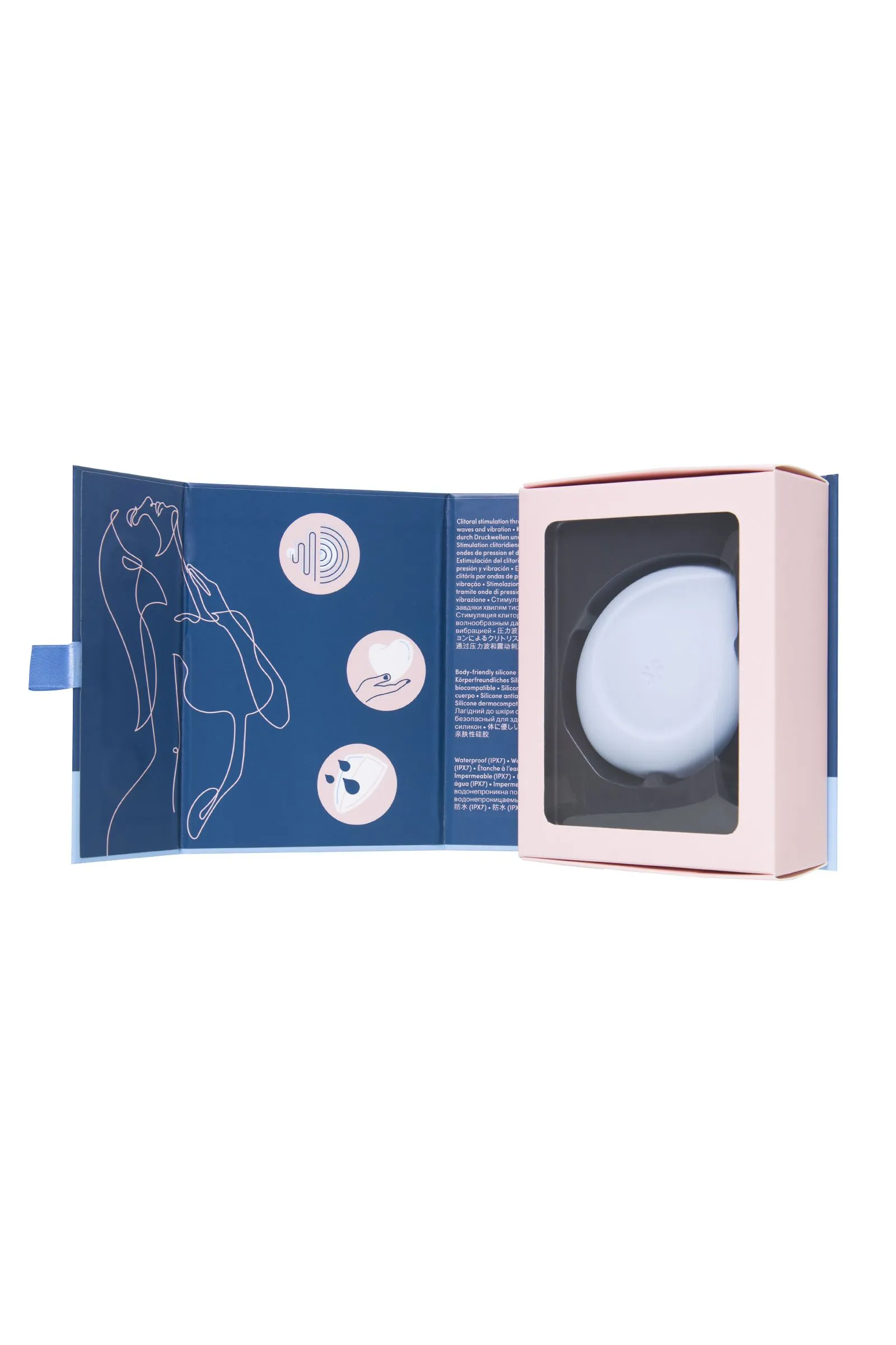 Система вакуума и волновых пульсаций позволяет обеспечивать уникальные ощущения, сочетая мягкое, но интенсивное воздействие на клитор, что помогает доставить мощный оргазм без прямого контакта с кожей.