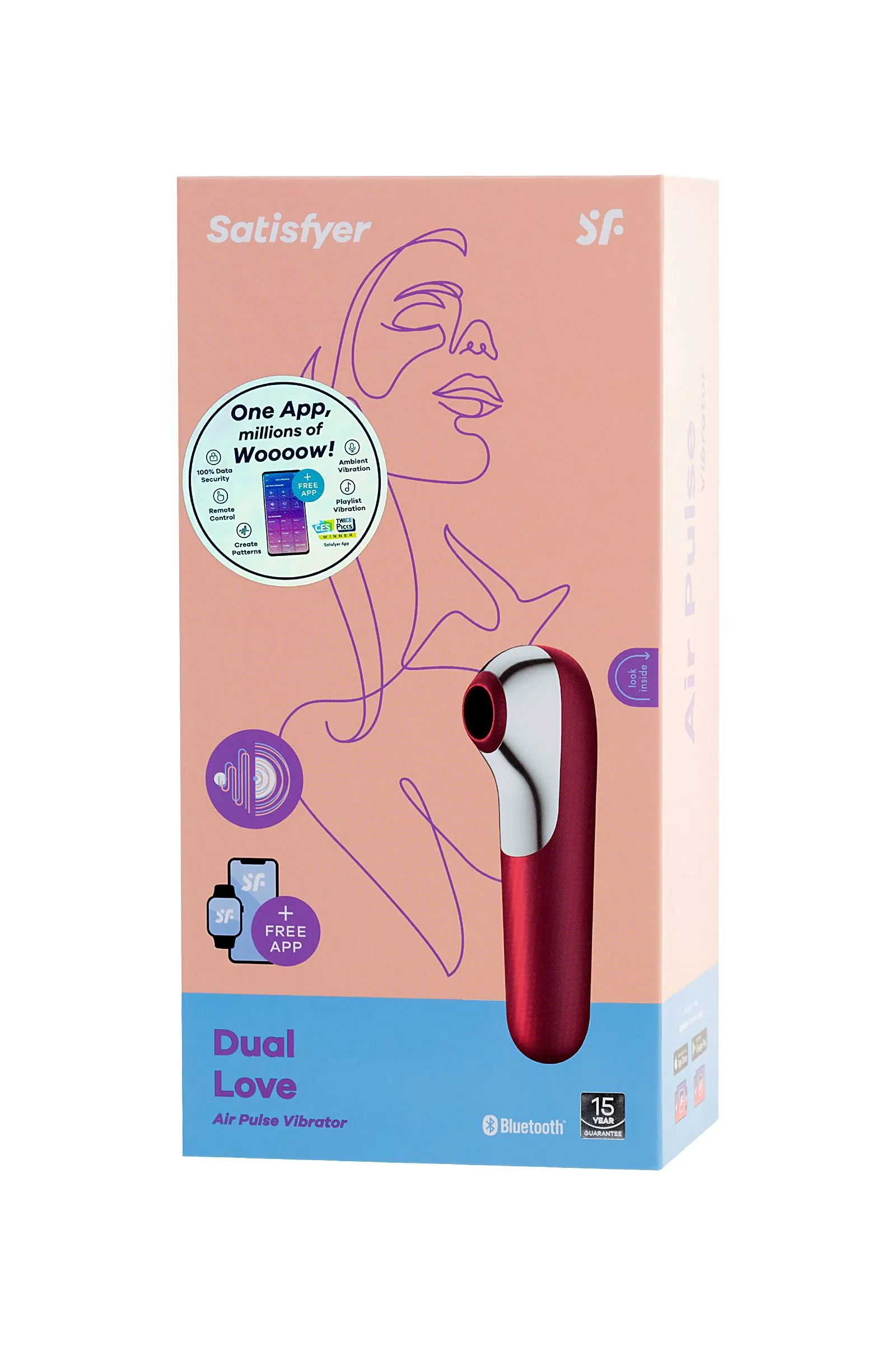 Dual Love - новый универсальный стимулятор клитора и вагинальный вибратор, он сочетает в себе стимулирующие волны воздушного давления Air Pulse и чувственную вибрацию. Стимулятор уникальной и эргономичной формы идеально лежит в ладони, не скользит. 11 вариантов вакуума и 10 различных режимов вибрации. Кончик стимулятора плотно прилегает к клитору и обеспечивает вакуумно-волновое воздействие, а его другая сторона отлично создаёт чувственную вагинальную вибрацию. 100% водонепроницаемость, поэтому его легко использовать в душе или ванне. Изделие изготовлено из мягкого, эластичного силикона без запаха, без аллергенов и вредных для здоровья веществ. Такой материал не впитывает запахи, не меняет цвет и не требует особого ухода. Используйте смазку для лучшего скольжения. Хранение Очищать головку игрушки желательно до и после использования. Можно помыть в теплой воде с мылом или воспользоваться специализированным чистящим средством. Перед хранением стимулятор необходимо хорошо просушить. Желательно хранить отдельно от других силиконовых изделий.