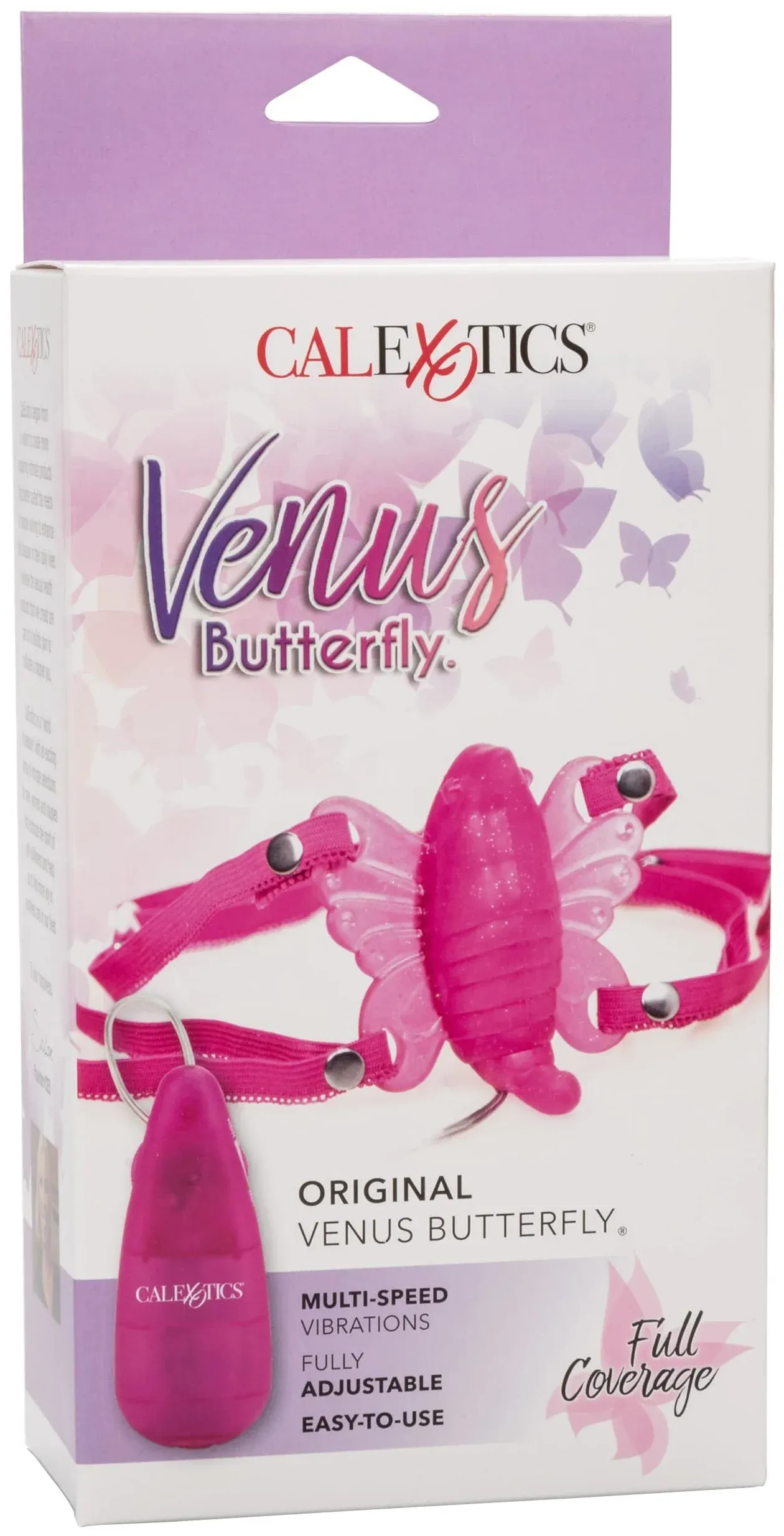 Original Venus Butterfly - компактный вибратор в виде бабочки, который надежно удерживается на месте с помощью удобных регулируемых ремней. Он изготовлен из мягкой, приятной на ощупь, гигиенически превосходной термопластичной резины. Съемная вибропуля управляется с помощью выносного пульта управления и обеспечивает многоскоростную вибрацию.