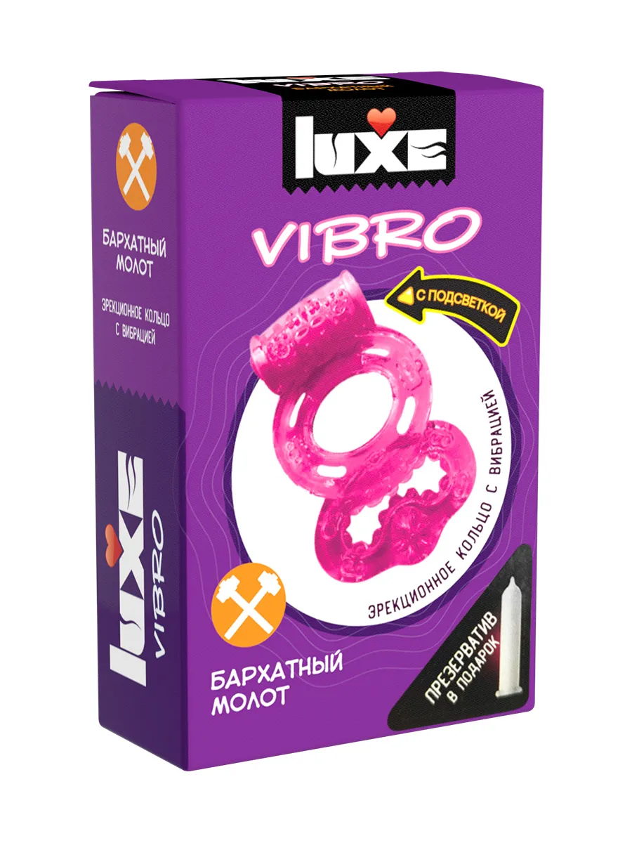 —Виброкольцо LUXE VIBRO Бархатный молот + презерватив, 1 шт, розовый, 18 см